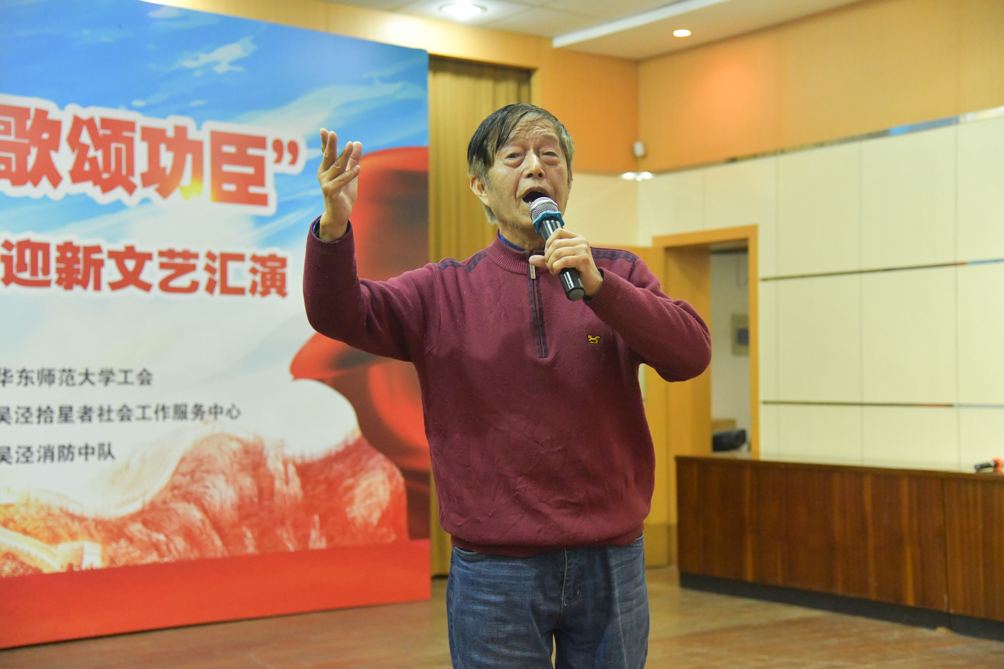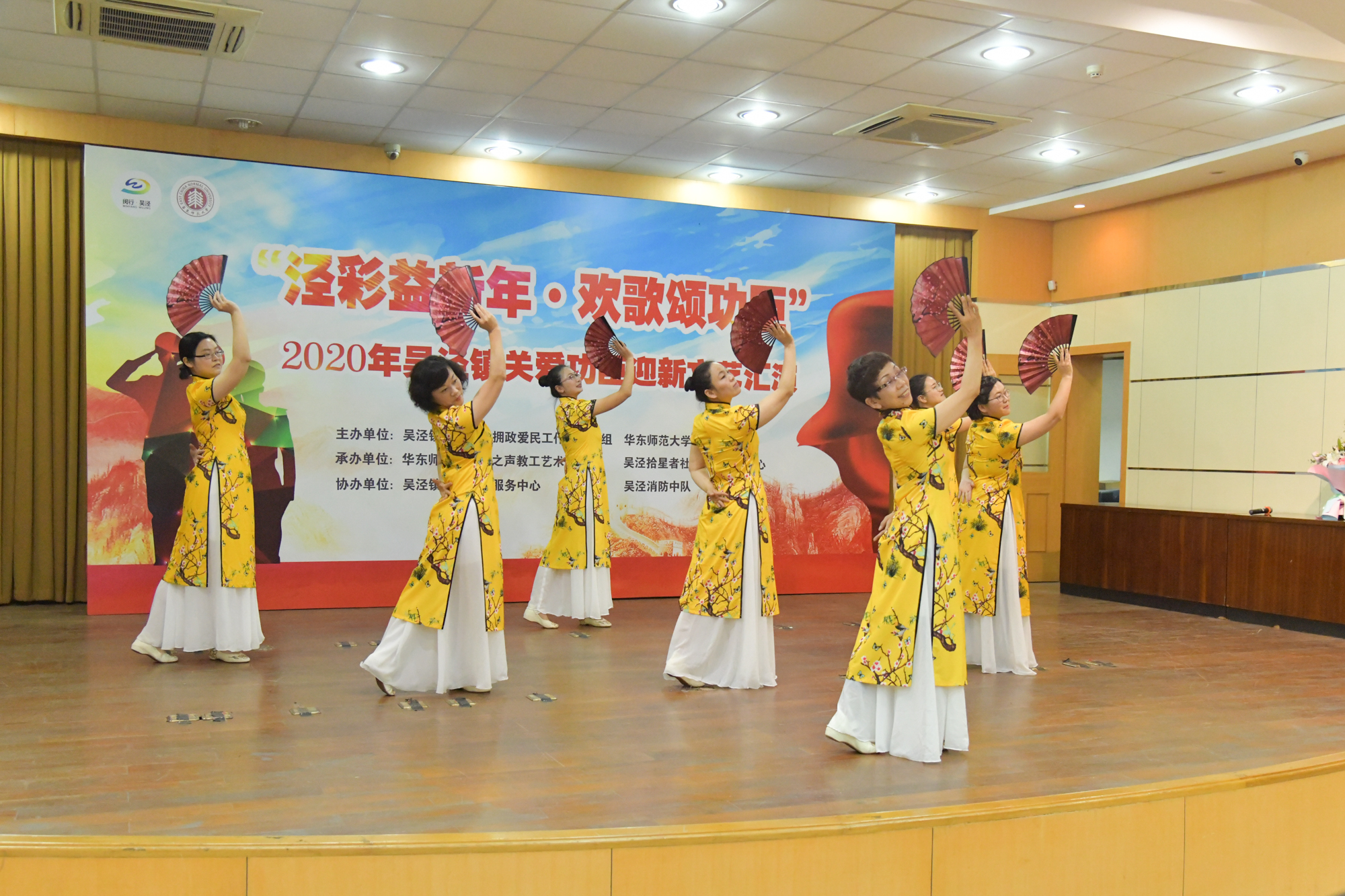 为发扬“拥军优属和拥政爱民”的光荣传统,校工会与吴泾镇双拥工作领导小组联合主办的以“泾彩益新年,欢歌颂功臣”为主题的2020年吴泾镇关爱功臣迎新文艺汇演在吴泾镇社区党校举行。来自吴泾镇的功臣老兵及其家属代表、吴泾消防中队消防员代表、周边社区文艺骨干及居民代表百余人出席。我校音乐学院声乐副教授兼“月之声”教工艺术团艺术总监李明月、校教职工合唱团指挥徐歆,吴泾镇社发办主任张杰、吴泾镇社区事务受理服务中心常务副主任兼吴泾镇退役军人服务站站长谈权飞、吴泾消防中队中队长助理张焕迪、拾星者社会工作服务中心总干事兼吴泾镇社会组织服务中心联合支部书记肖庆出席活动。我校传播学院本科生向林浩和李舜瑶主持活动。
