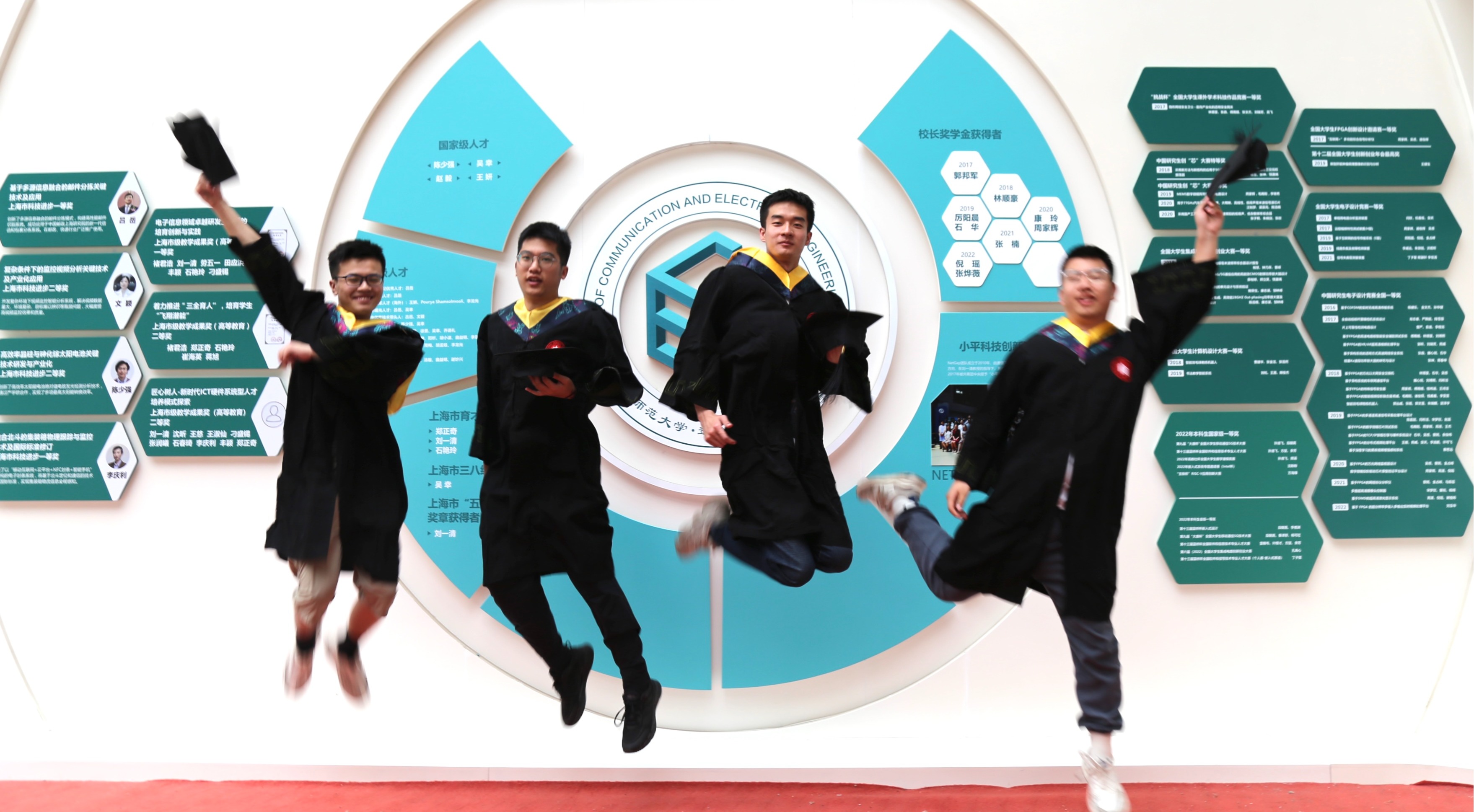 大二,4人组团参加全国大学生电子设计大赛,获得上海赛区三等奖;大三,4人组团参与双创活动,获大学生创新创业项目国创、市创称号优秀结题;获“蓝桥杯”全国软件和信息技术专业人才大赛全国总决赛三等奖、上海赛区一二三等奖;获“大唐杯”全国大学生移动通信5G技术大赛全国总决赛一等奖、上海赛区一等奖、三等奖;获全国大学生光电设计竞赛华东赛区三等奖;获计算机应用能力大赛上海市三等奖一项。今年9月,将在本校本专业攻读硕士研究生的他们,说“如果可以,希望我们能继续在同一个寝室”。