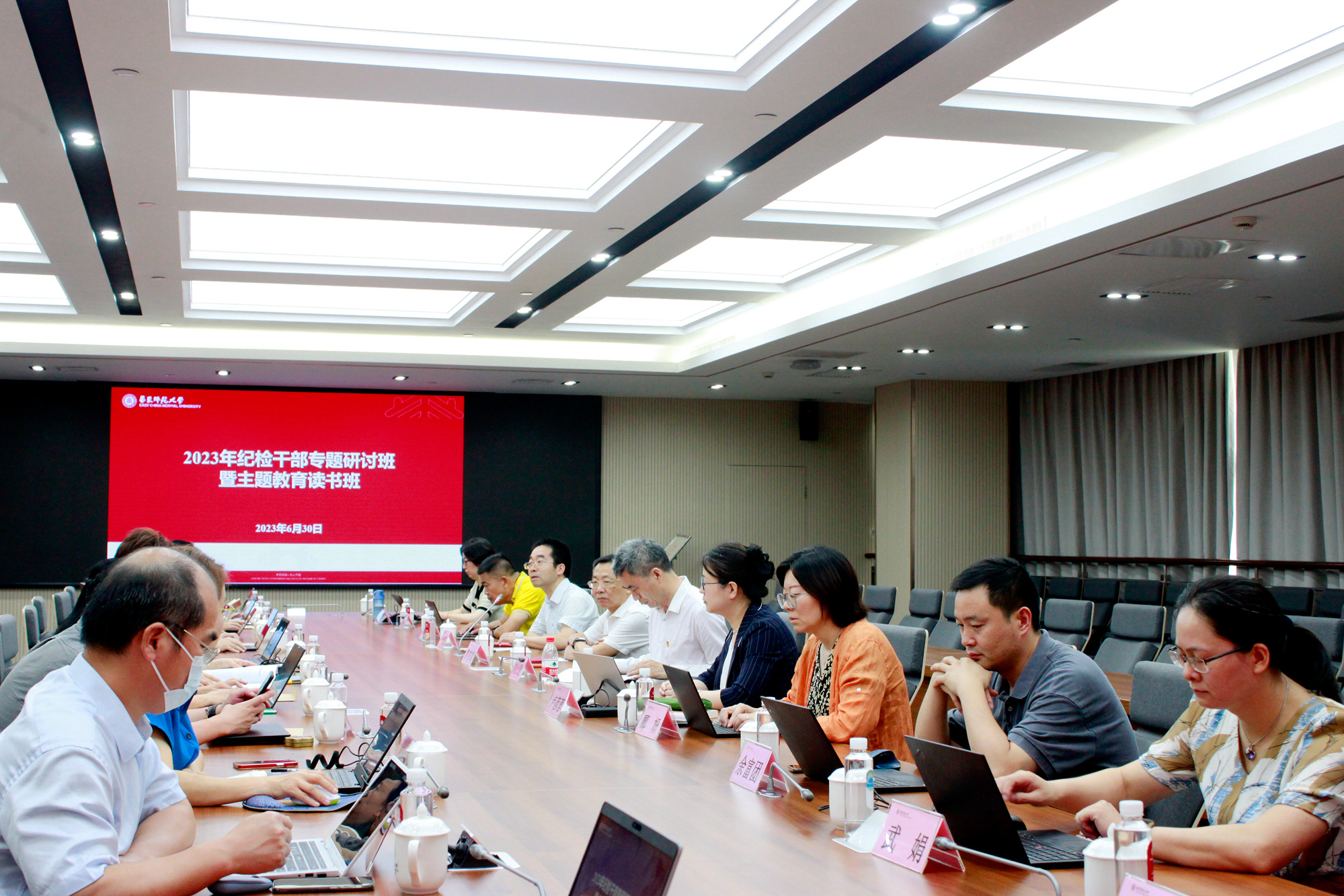 2023年纪检干部专题研讨班暨主题教育读书班第五次教学活动于6月30日在校举行。上海社科院机关纪委书记刘社建研究员,华东师大美术学院张索教授应邀作专题报告。校党委副书记、纪委书记曹友谊出席。本次教学活动由校纪委副书记、纪委办主任、监察处处长俞黎阳主持。