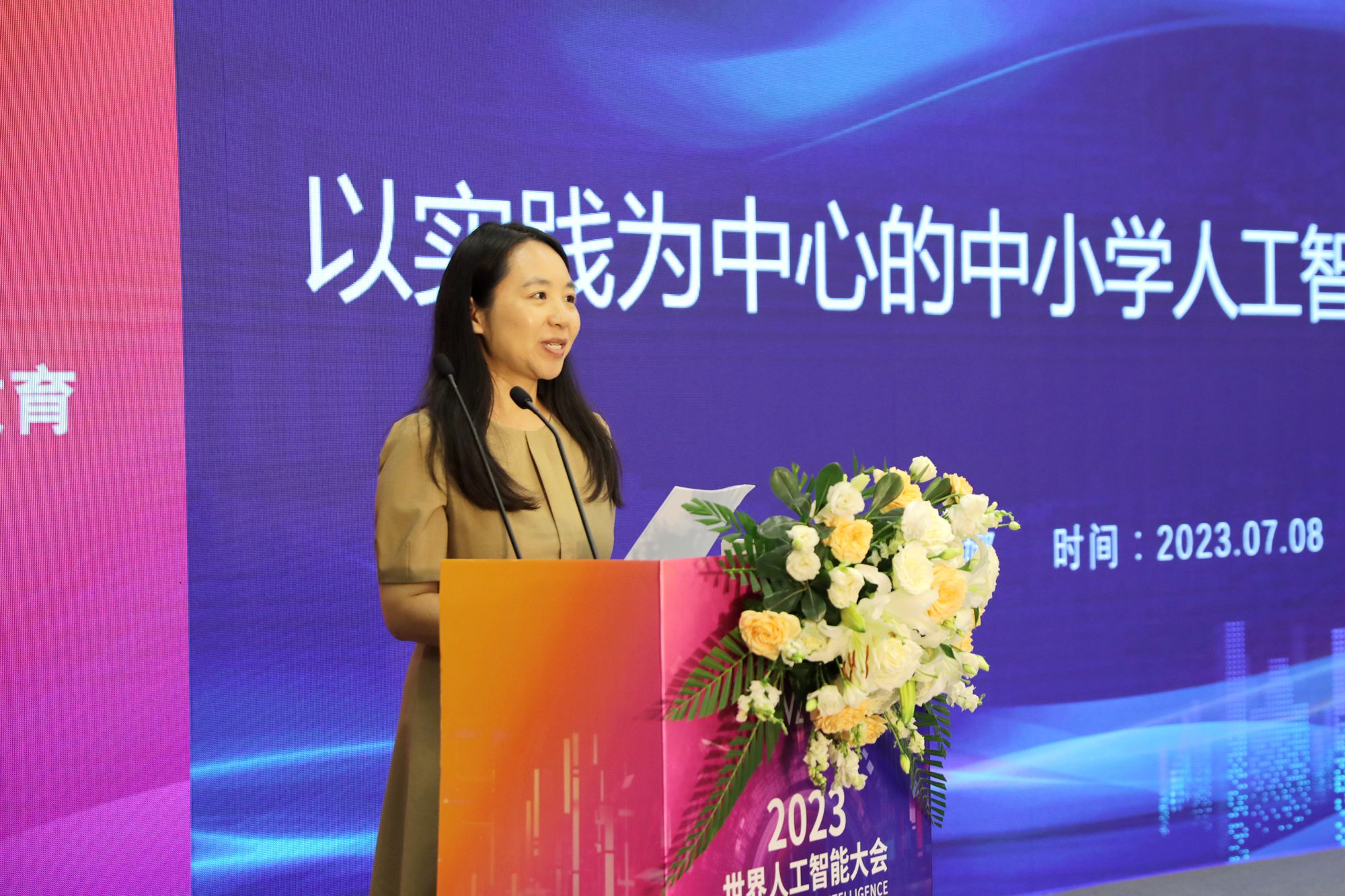 “AGI时代创新人才培养研究”专题研讨环节,由上海AI实验室教授林达华主持。课程教材研究所课程改革实验研究中心主任魏娜发表了题为《以实践为中心的中小学人工智能教育》的主题演讲,具体讲述了为什么要进行人工智能教育、人工智能教育与教学以及中小学人工智能教学实践策略三方面展开。她表示,为帮助教师更好地实施人工智能教学,课程教材研究所与上海AI实验室合作开发了中小学人工智能教育实践研究项目,经过一年的沉淀总结提炼了人工智能教学模型和教学设计表,为中小学教师开展基于核心素养的人工智能教学提供“脚手架”和可参考借鉴的依据。