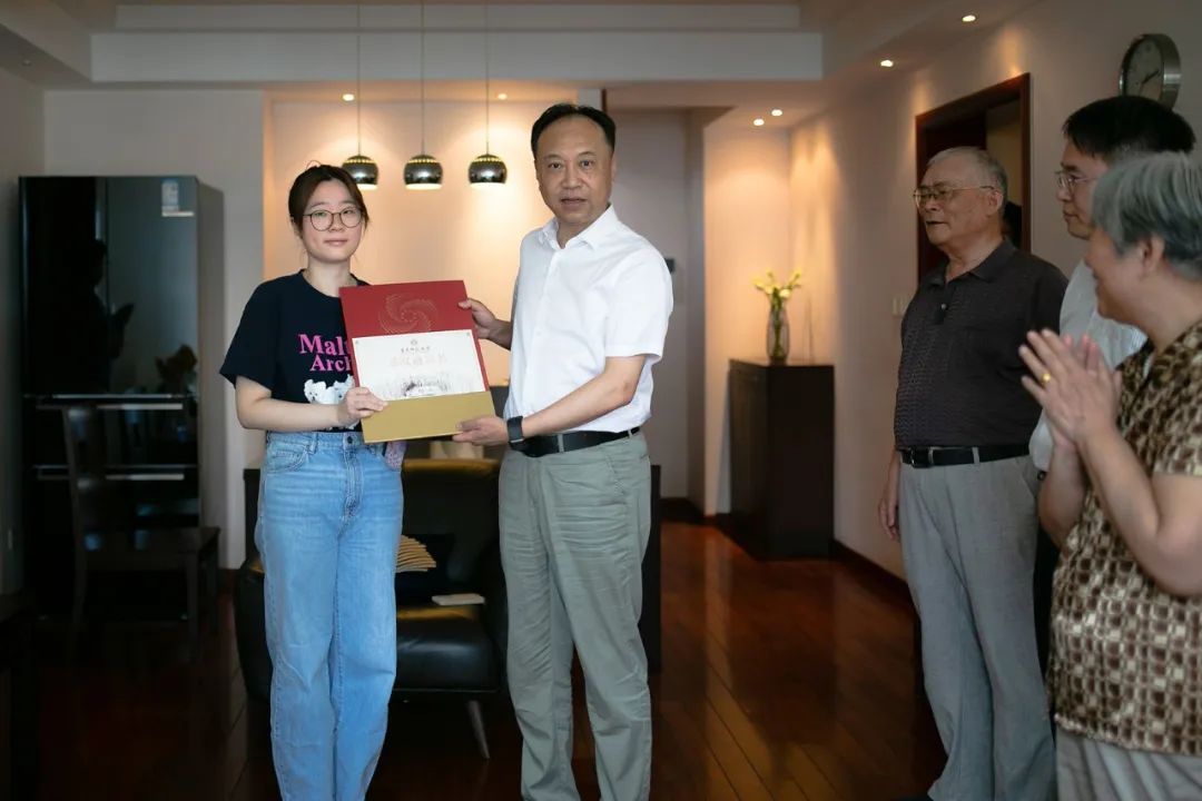 华东师大0001号录取通知书由副校长戴立益亲手送抵 “收件人”万沣玮同学的手中