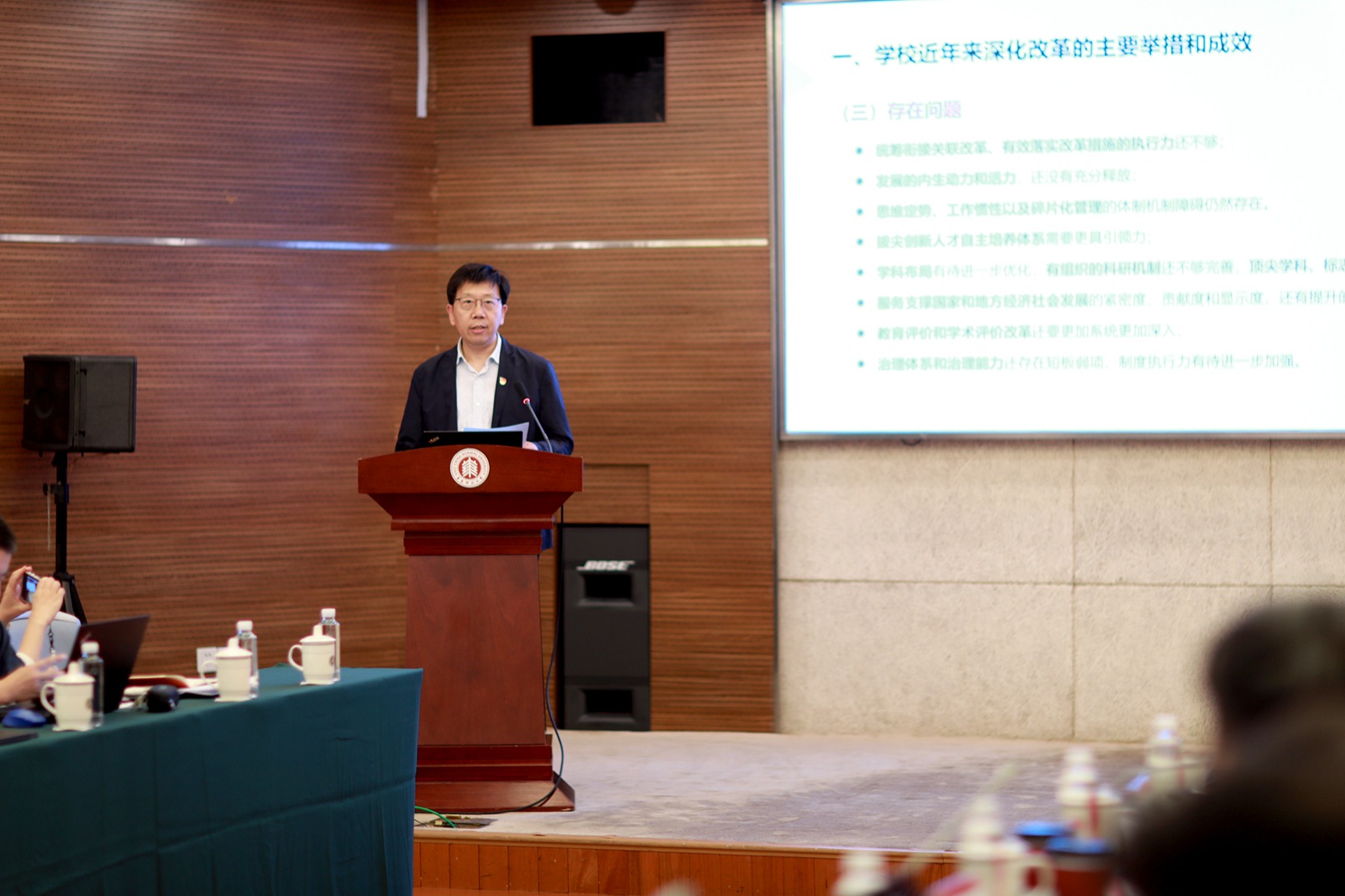 聚焦一流综合性研究型大学建设,钱旭红、雷启立、程静分别围绕“落实‘两个先行先试’,深化综合改革”“聚焦国家战略需求,推进一流学科建设”“推进校院两级财务管理,提高资源配置效率”作专题发言;