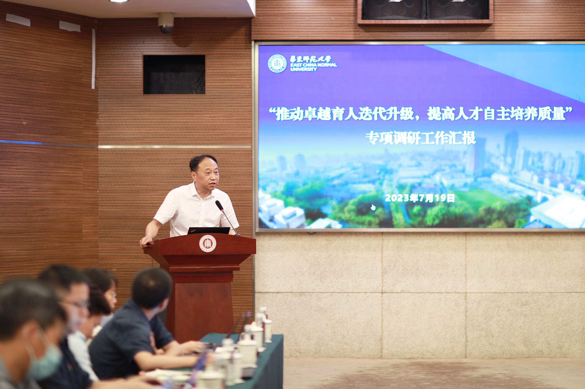 7月19日下午,澳门永利皇宫官网入口学习贯彻习近平新时代中国特色社会主义思想主题教育调研成果交流会在普陀校区举行。会议旨在深入学习贯彻习近平总书记关于调查研究的重要论述和重要指示批示精神,围绕“强国建设、教育何为”时代之问,系统总结主题教育开展以来的进展,交流调研成果,听取意见建议,谋划高质量发展新思路新举措。教育部直属高校主题教育第六巡回指导组组长赵忠、组员王超莅临指导,校领导班子成员,主题教育调研牵头职能部门负责人出席会议。本次会议由校党委书记梅兵主持。