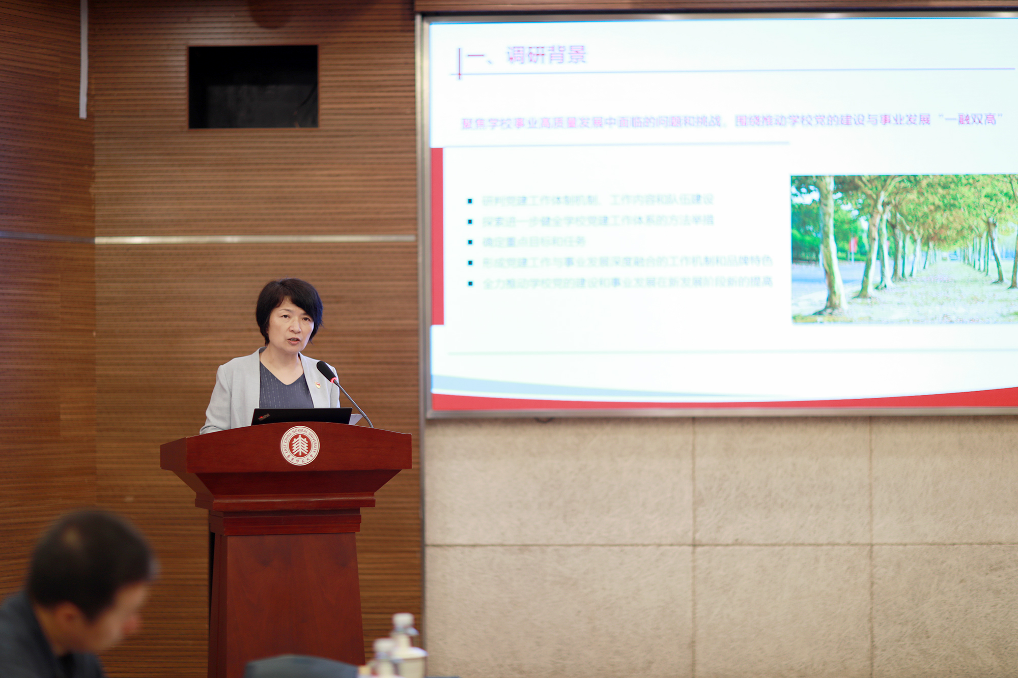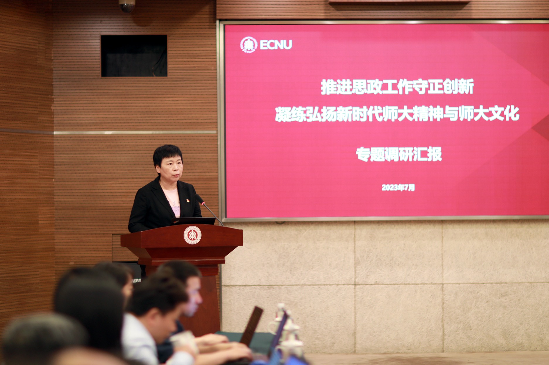 聚焦高质量党建引领新发展,梅兵、杨昌利、曹友谊分别围绕“推动党的建设与学校事业发展深度融合,以高质量党建引领推动高质量发展”“推进思政工作守正创新,凝练弘扬新时代师大精神与师大文化”“推进全面从严治党向纵深发展,提升内部治理能力”作专题发言;