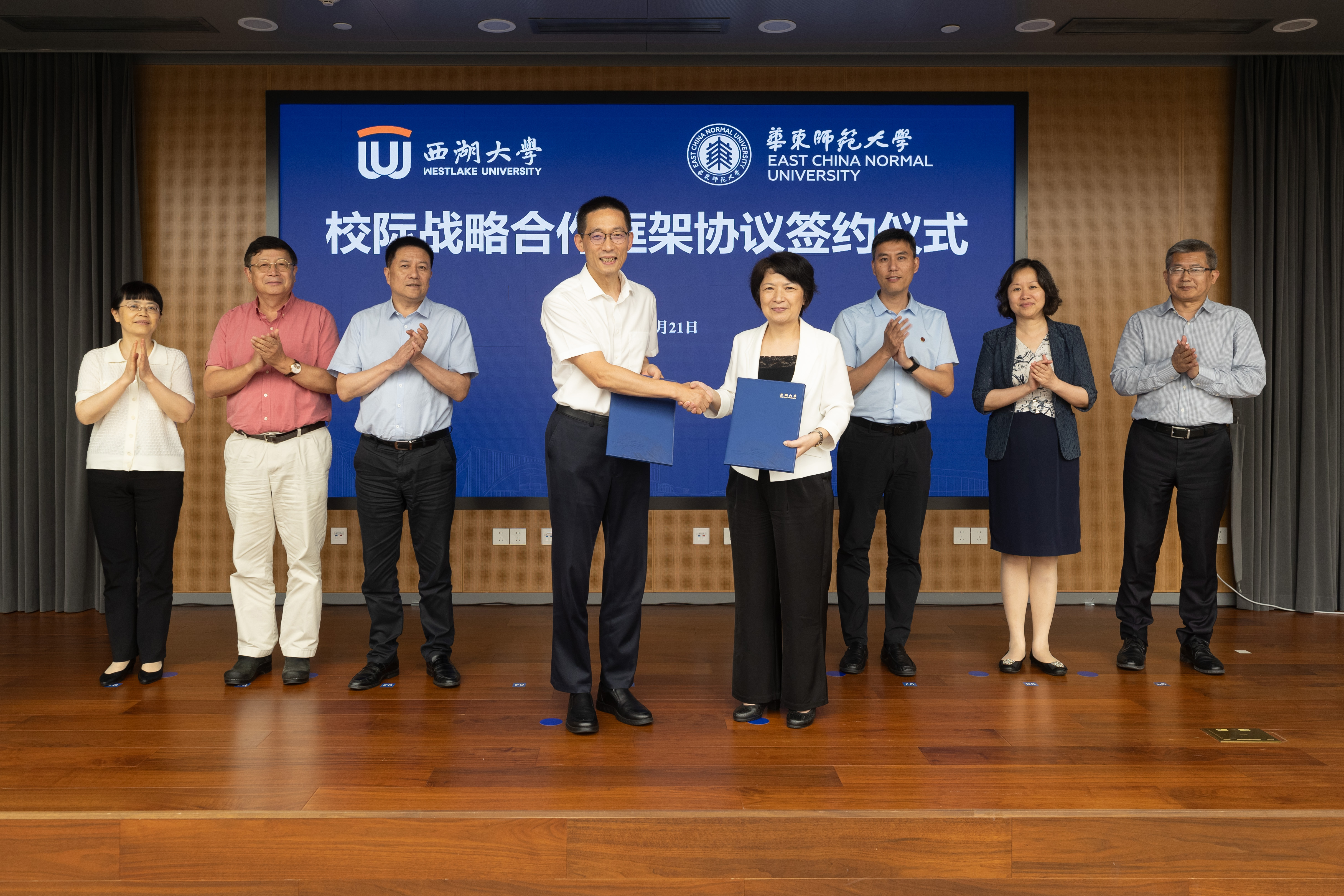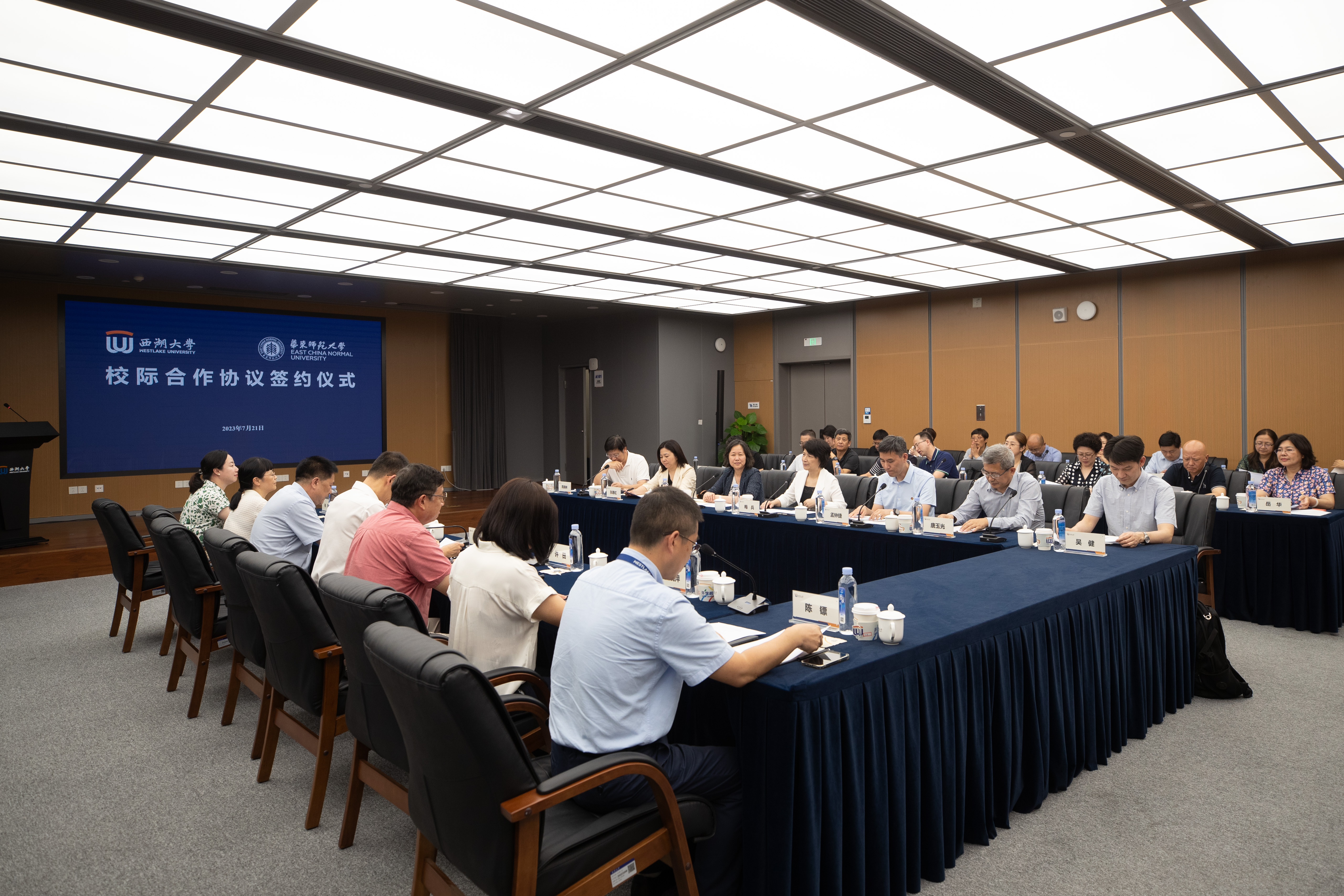 党委常委、副校长、党委组织部部长程静,学术委员会秘书长唐玉光;西湖大学党委书记董清源,副校长、学校秘书长朱晓芸等共同见证了签约仪式。