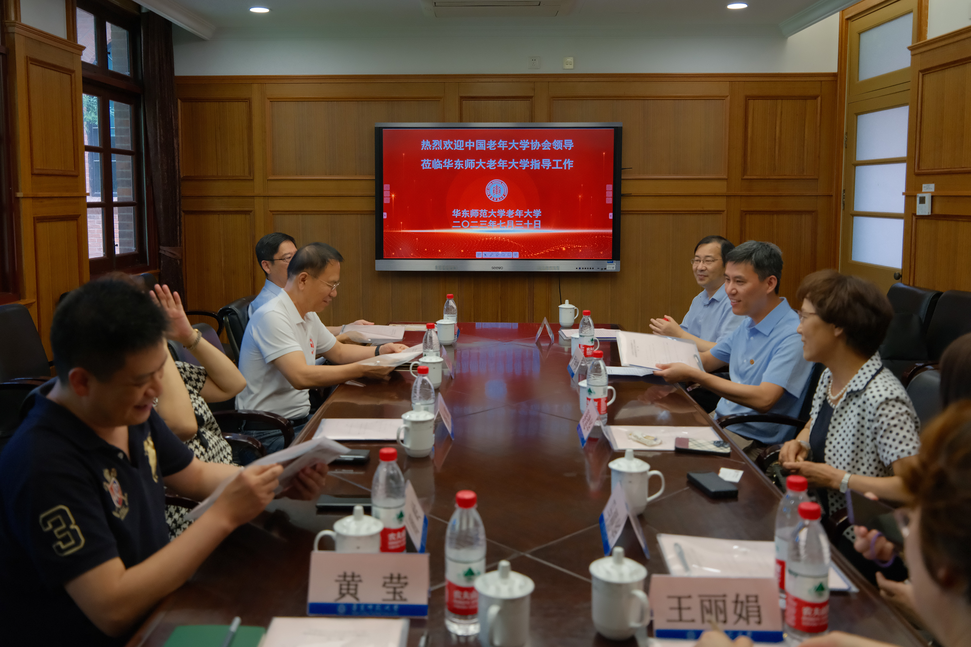 7月30日,中国老年大学协会常务副会长刁海峰一行赴华东师大老年大学调研。澳门永利皇宫官网入口党委副书记孟钟捷与中国老年大学协会领导在普陀校区办公楼进行座谈。