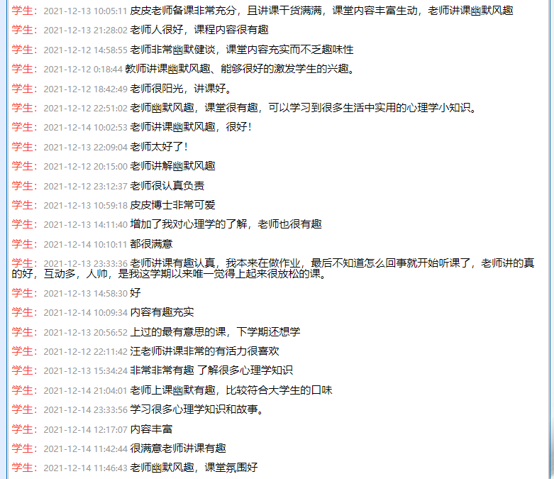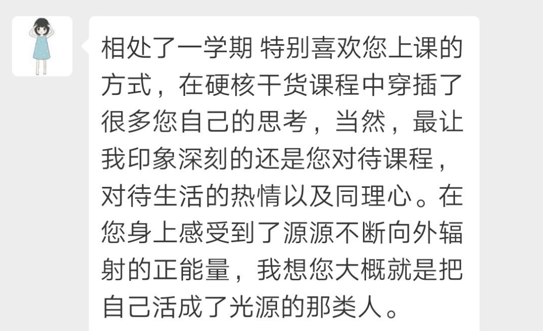 ”一茬茬学生教没教会不好说,反正我把自己教得越来越通透了。通过讲《心理学与生活》,我的社交恐惧克服了,情绪调节能力提升了,对人性的理解也更深刻了。“
