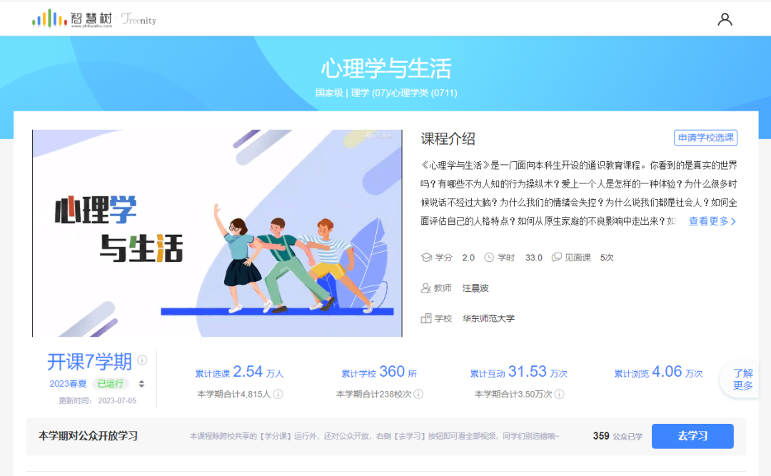 谈起开设课程的初衷,汪晨波表示:“这几年来,民众的心理健康水平,包括大学生的心理状态都面临着挑战。因此,这样一门能够帮助深刻洞察内心、构造积极心理品质的课程,对大学生是非常有益的。”