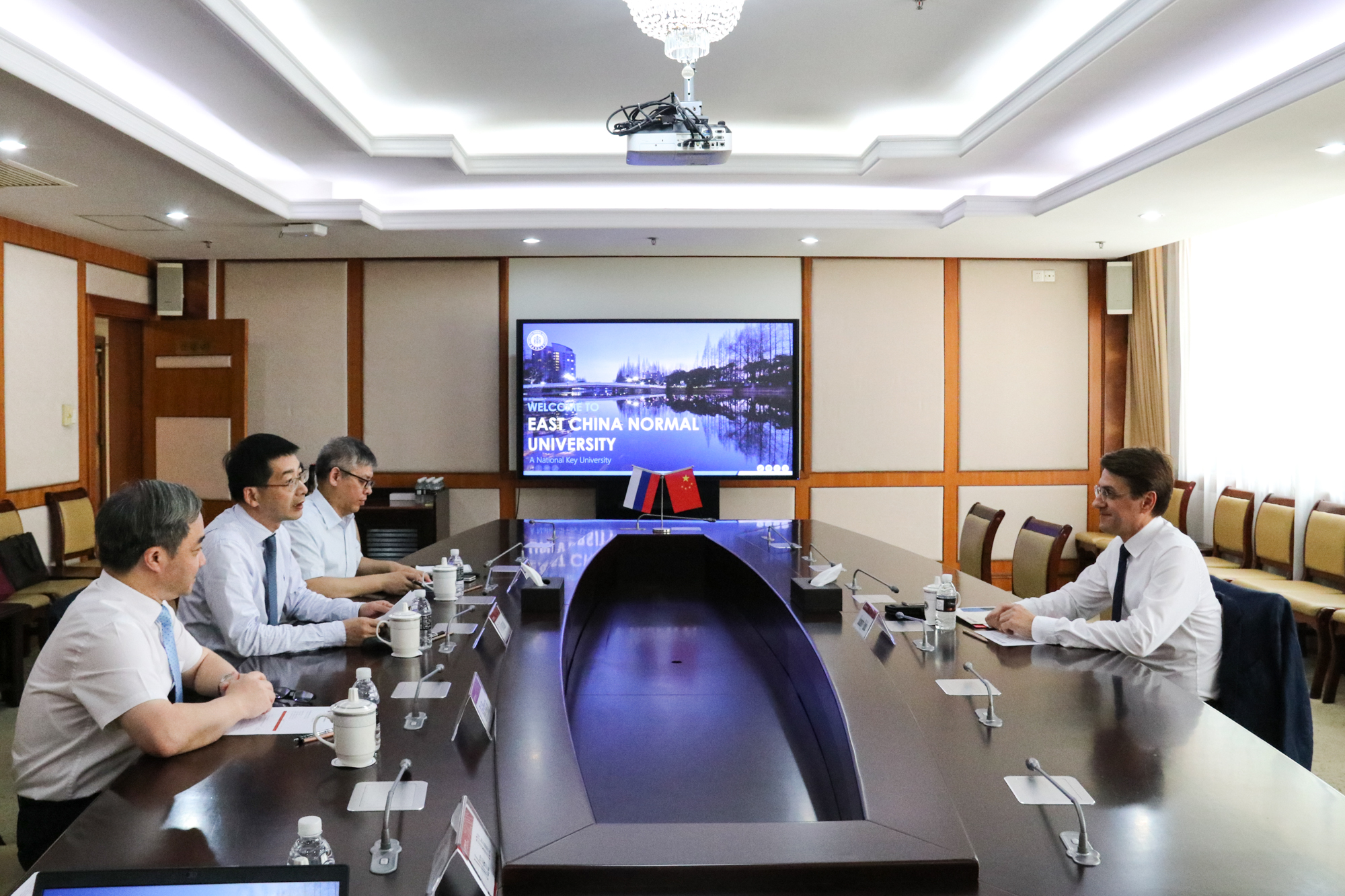 顾红亮对Vladislav Kuchmistyy的首次来访表示欢迎,并简要介绍了华东师大的校情、发展战略以及学校对俄合作交流总体情况,他表示,相信Kuchmistyy的此次来访将能推动双方增进交流和了解,开拓合作共赢新局面。随后,周爱民介绍了华东师大智能教育实验室的建设情况和具体实践,贝文力介绍了俄罗斯研究中心的发展历程。