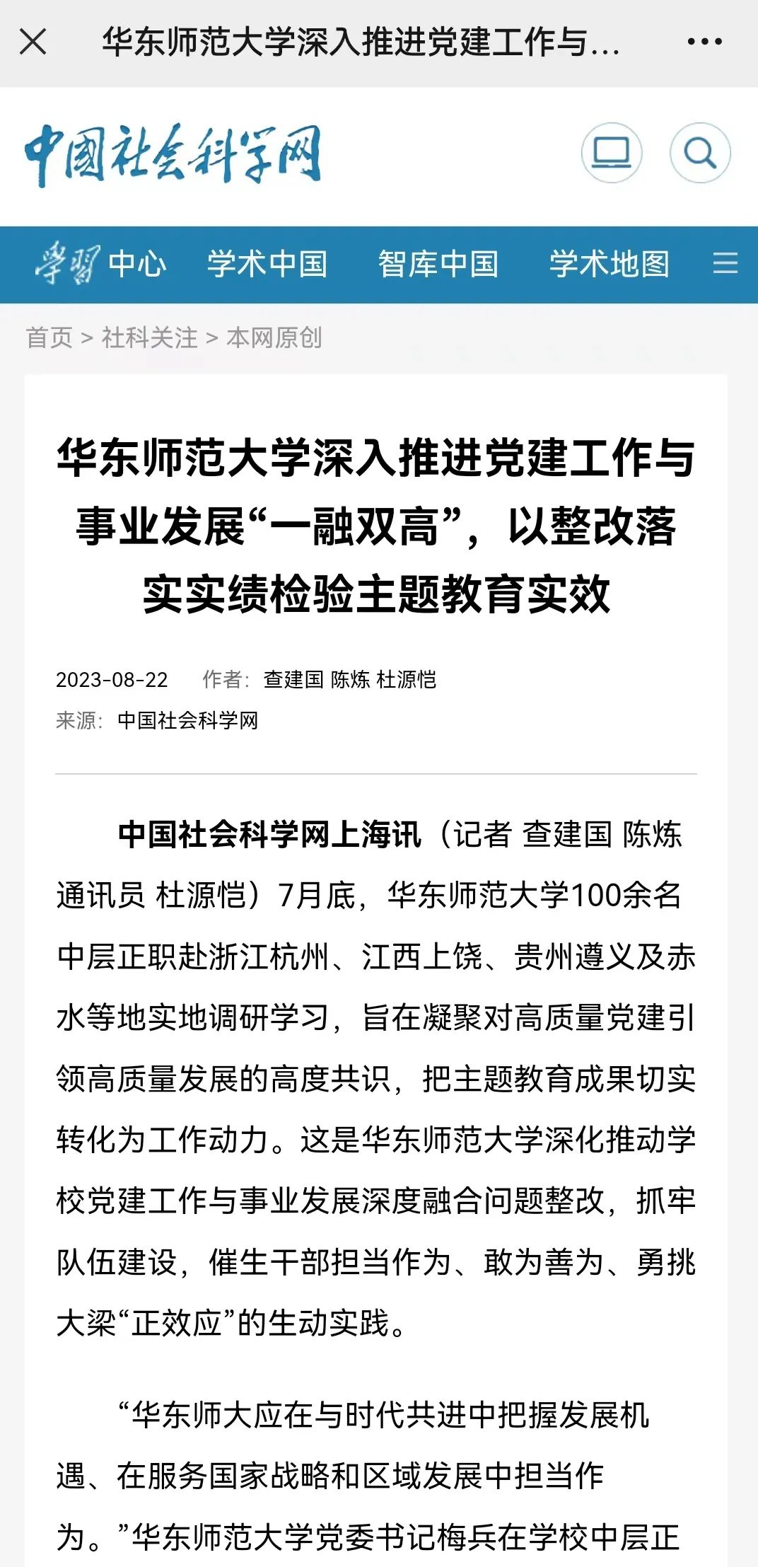七月底,澳门永利皇宫官网入口100余名中层正职赴浙江杭州、江西上饶、贵州遵义及赤水等地实地调研学习,旨在凝聚对高质量党建引领高质量发展的高度共识,把主题教育成果切实转化为工作动力。这也是澳门永利皇宫官网入口深化推动学校党建工作与事业发展深度融合问题整改,抓牢队伍建设,催生干部担当作为、敢为善为、勇挑大梁“正效应”的生动实践。