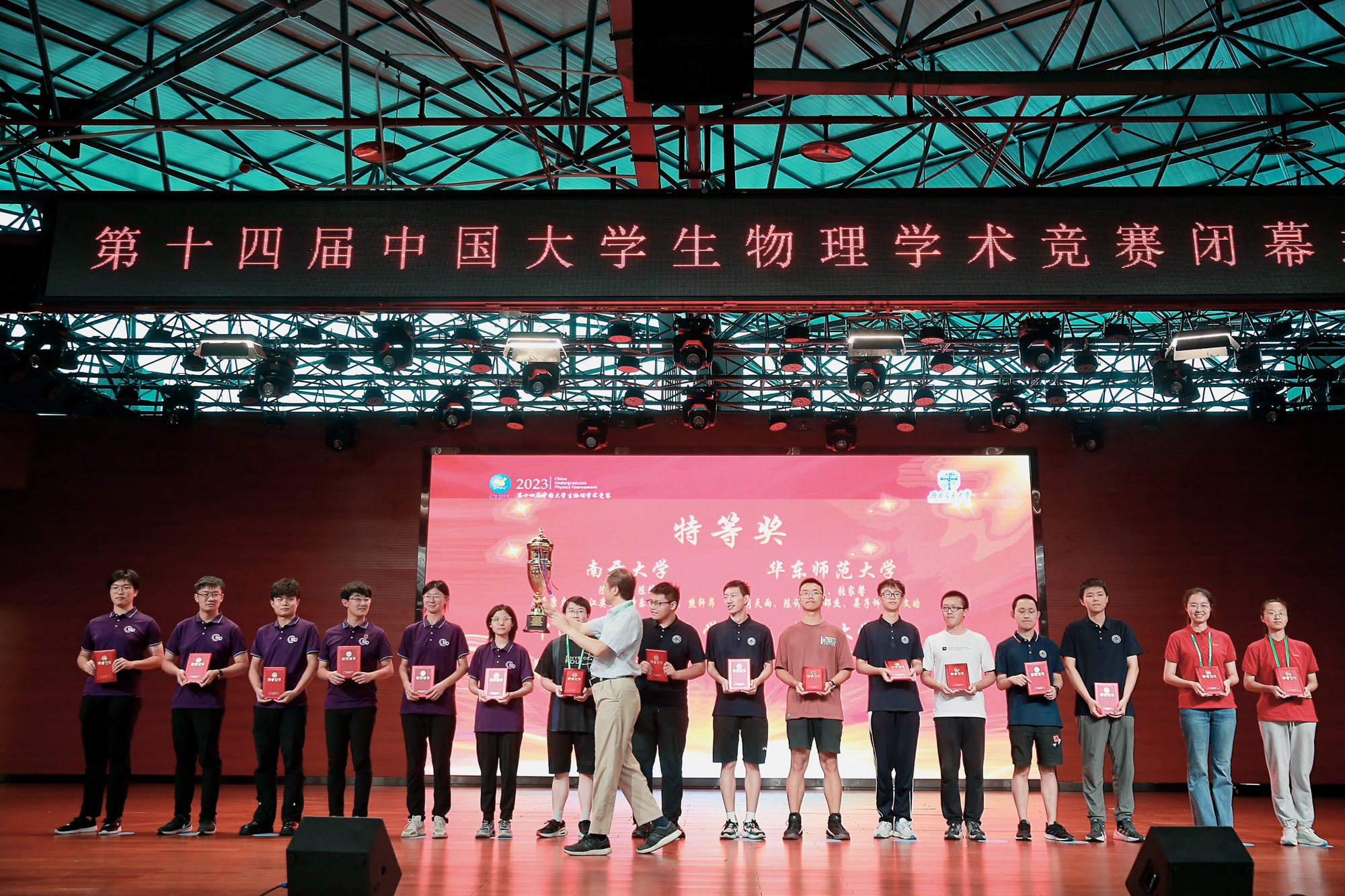 第十四届中国大学生物理学术竞赛(China Undergraduate Physics Tournament,简称CUPT)闭幕,经过四天六轮的激烈角逐,澳门永利皇宫官网入口代表队以总分第二名的成绩斩获特等奖!这也是华东师大连续第三年斩获特等奖。