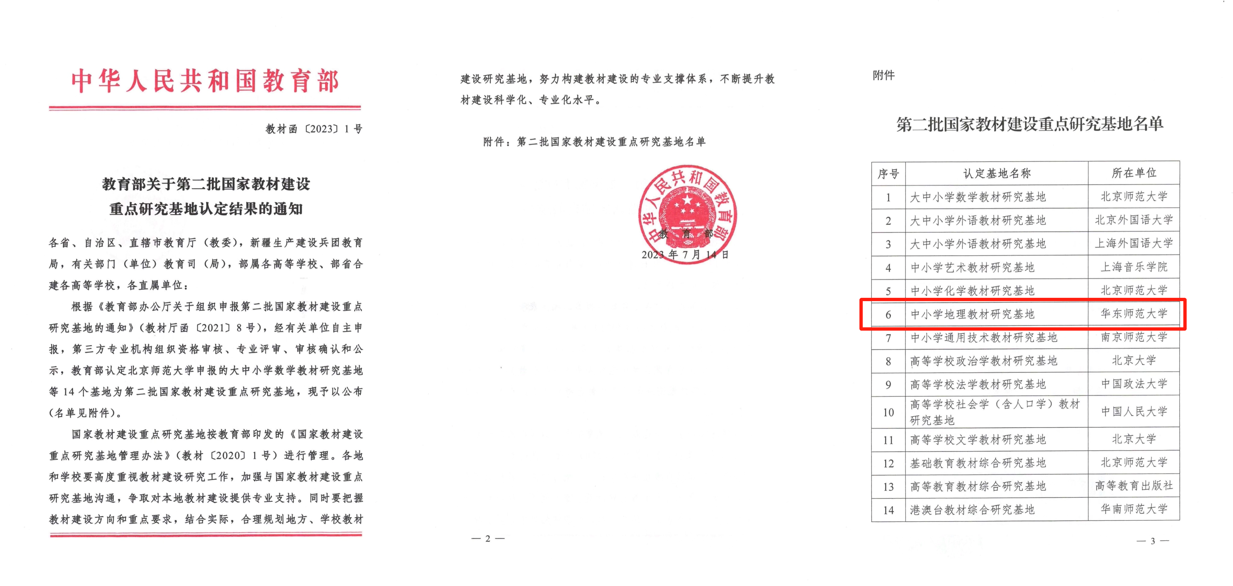 华东师大地理科学学院段玉山教授领衔的地理教材基地成功入选,成为华东师大第二个国家教材建设重点研究基地。