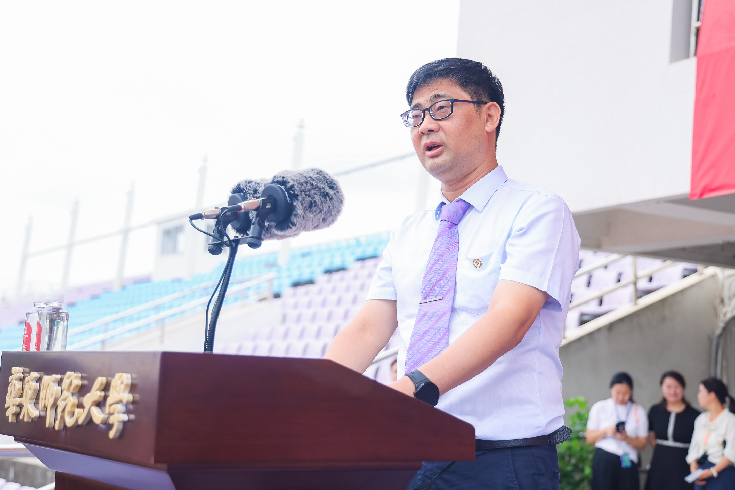 国家高层次人才计划入选者、中国数学会常务理事、澳门永利皇宫官网入口数学科学学院院长吕长虹教授作为教师代表致辞。他以“绽放自我,胸怀天下;主动追求,踏实大度”为主题,围绕“主动追求的最坏结果大于等于被动选择的最好结果”“贪婪算法大概率是找不到最优解的”“态度决定你未来的高度”三个维度,表达了对同学们的期待和祝福,希望同学们做主动学习、有大局观、踏实认真的华东师大人。
