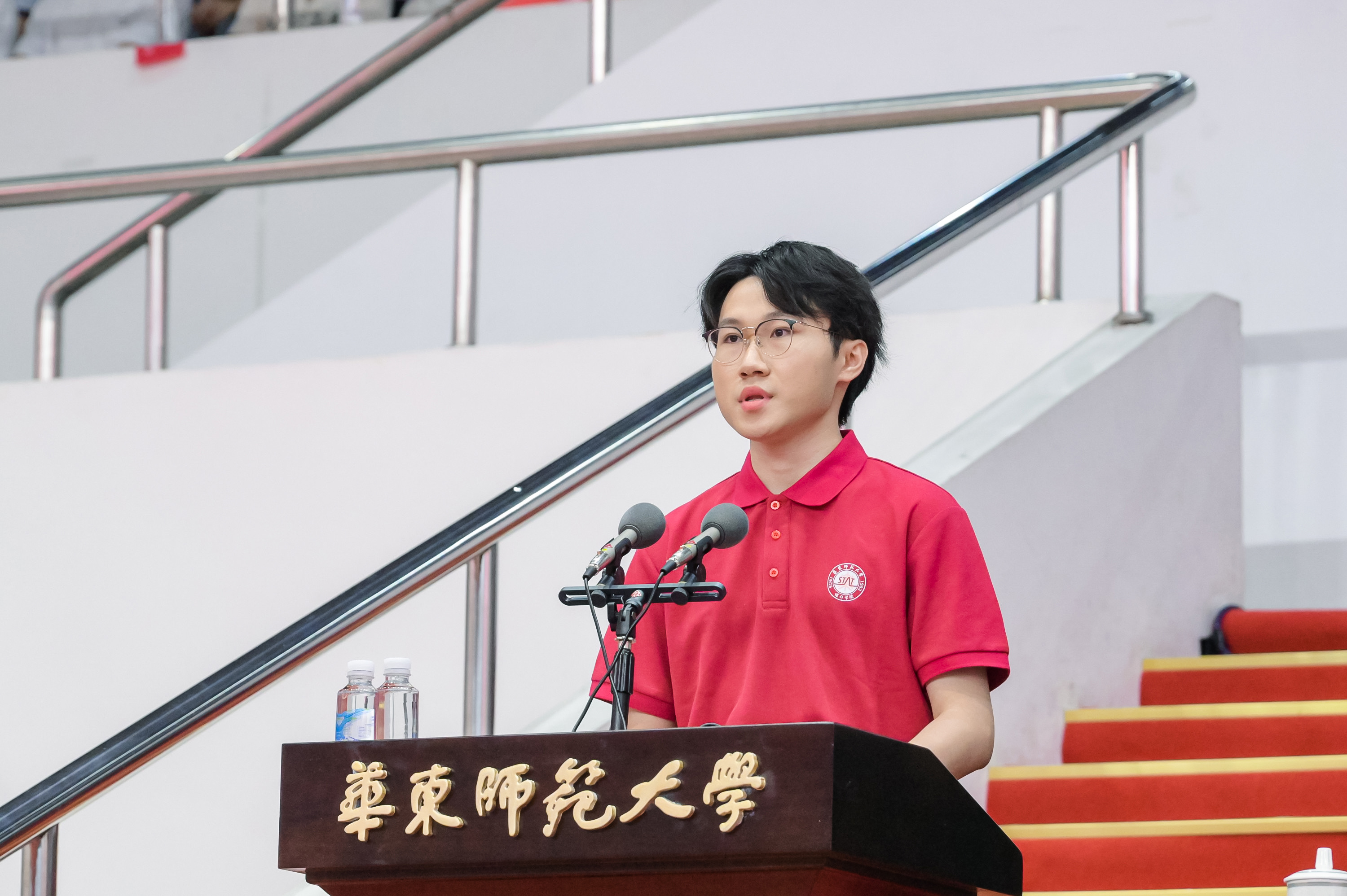 在全国大赛中多次斩获嘉奖,获得3项国家发明专利授权,获评校优秀毕业生、国家奖学金等多项荣誉——通信与电子工程学院2023级博士研究生谢祖炜作为老生代表发言。经过在华东师大6年的求学时光,他勉励自己能“找准定位,肩负使命”,“时时自省,常常超越”,“自觉的延时满足”,从心怀国之大者,积极开展扎实的基础研究,努力探索突破,成为国家创新队伍的生力军。