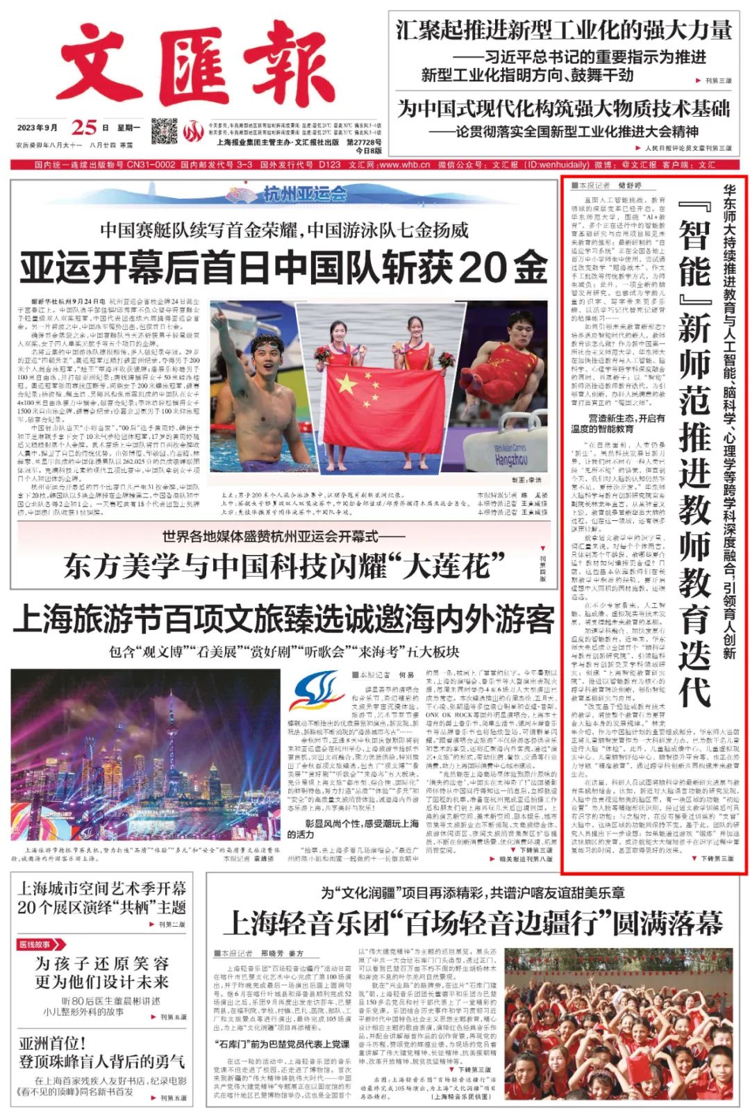 9月25日 《文汇报》头版