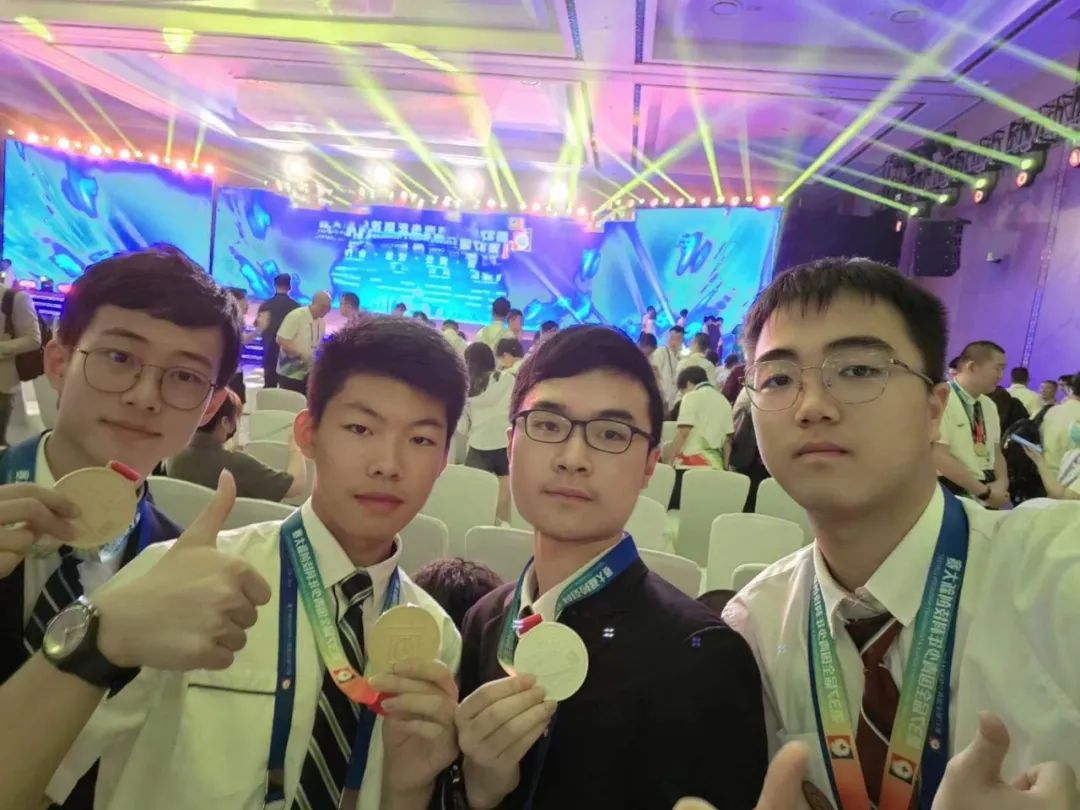华二紫竹2024届5班沈天恩同学(左二)荣获第37届全国青少年科技创新大赛一等奖