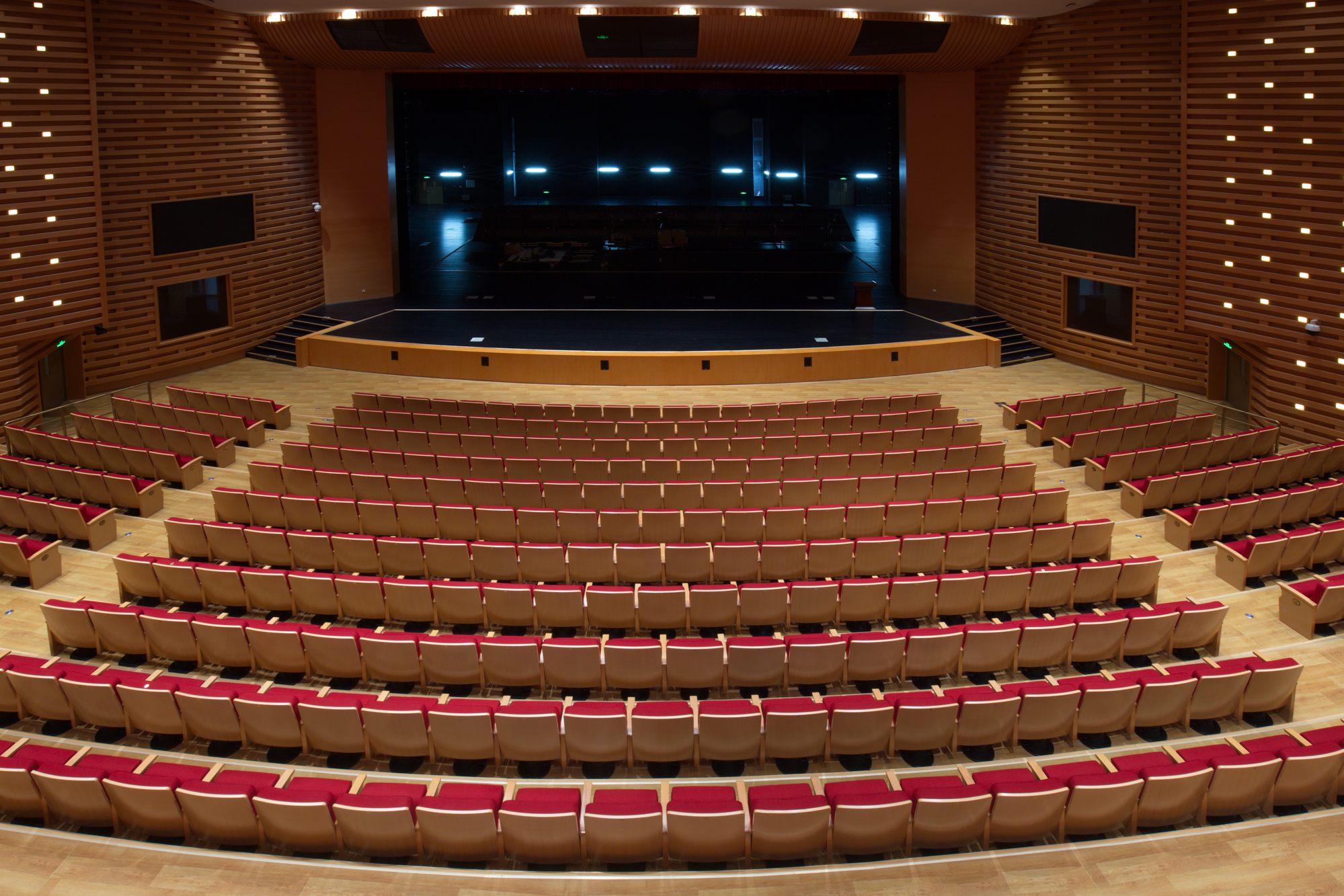 中心剧院占地7000多平方米,主舞台宽20米,前后深22米,属于无极升降式舞台。剧院观众席分为上下两层,共1106座,其中一层844 座,二层262座,剧院内部共设有3个VIP化妆间、5个化妆间和1个抢妆间;多功能厅占地约333平方米,可容纳150余人开展专题会议、讲座报告和文化活动。