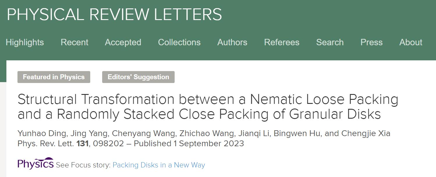 碟状粒子堆积体系常见于多个科学与工业领域,但其堆积结构和演化规律不为人知。物理与电子科学学院、上海市磁共振重点实验室夏成杰副研究员团队利用磁共振成像技术,发现并解释了碟状颗粒堆积中反常的结构有序化转变现象,可帮助理解碟状粒子体系的非热平衡态行为。