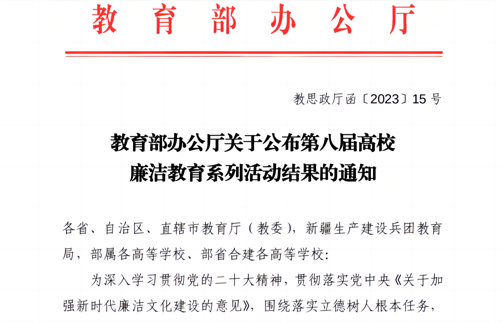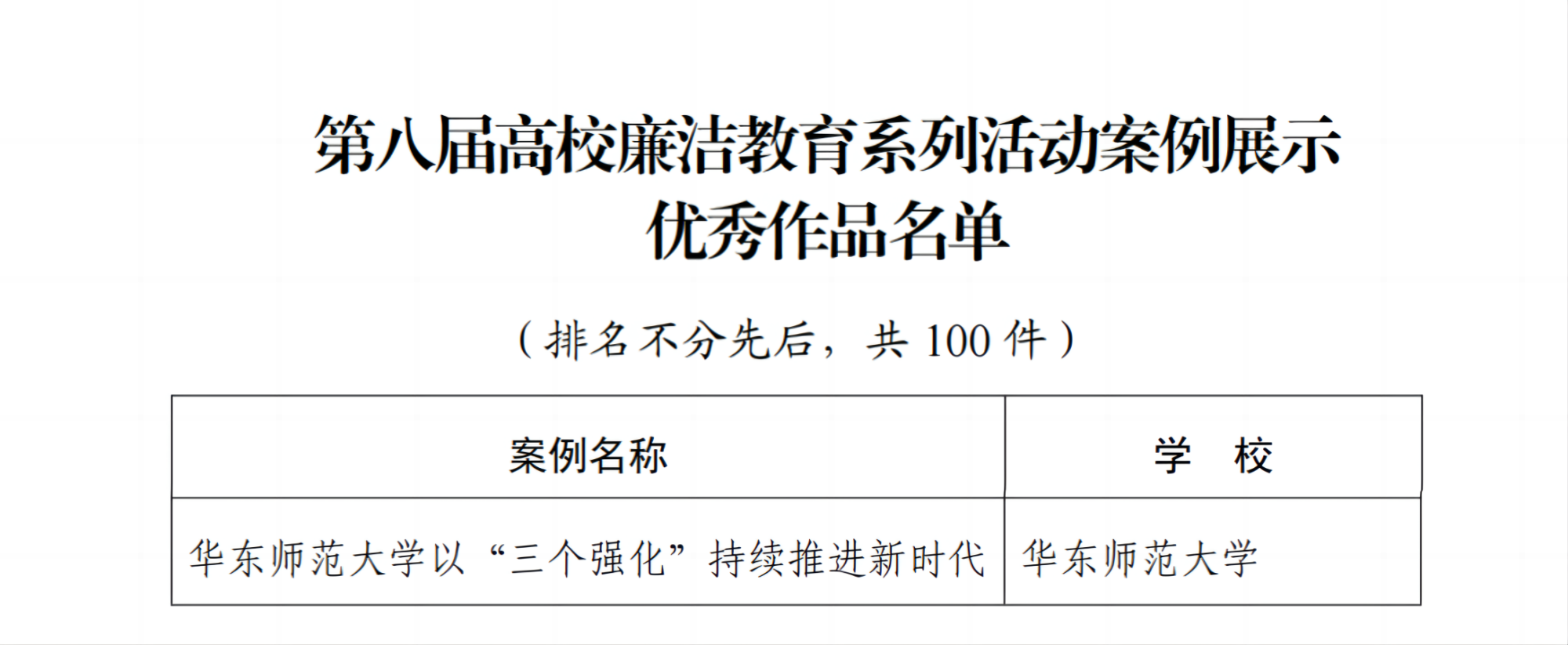 近日,教育部发布《关于公布第八届高校廉洁教育系列活动结果的通知》。华东师大中文系本科生胡欣悦的《八面风来山镇定,一轮明月水清深》入选“廉心文语”校园征文优秀作品,纪委办公室撰写的《澳门永利皇宫官网入口以“三个强化”持续推进新时代廉洁文化建设》入选案例展示优秀作品。获奖作品将在新华网、全国高校思想政治工作网、中国大学生在线等平台进行展播。