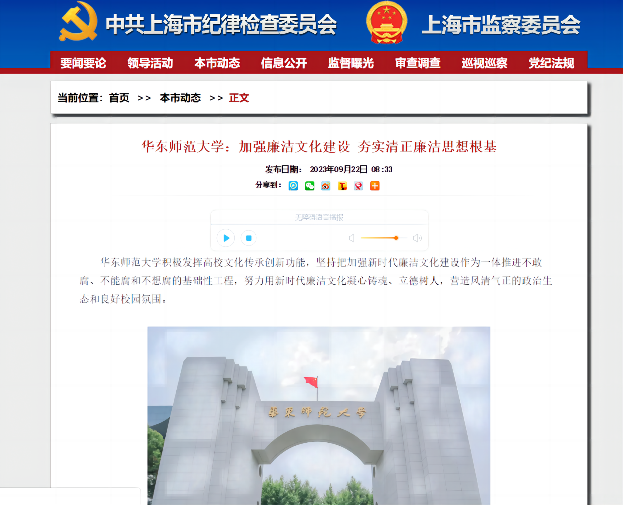 上海市纪委监委网站介绍学校廉洁文化建设工作成效
