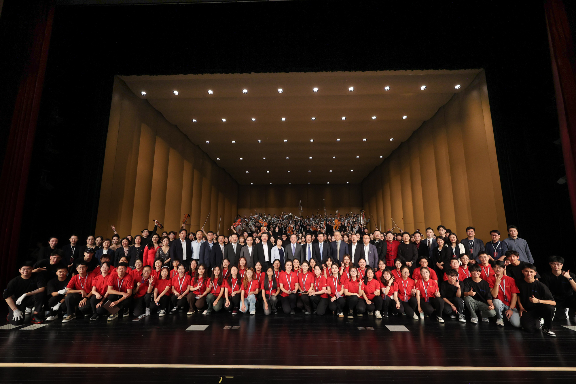 上海市老领导;上海市政府及相关委办局、闵行区委区政府、贵州省赤水市、中国红十字会事业发展中心、各兄弟高校、澳门永利皇宫官网入口发展咨询委员会的领导和专家们;校友、合作企业、大零号湾文化艺术中心承建方和闵行社区市民、澳门永利皇宫官网入口师生、各方代表等出席音乐会。