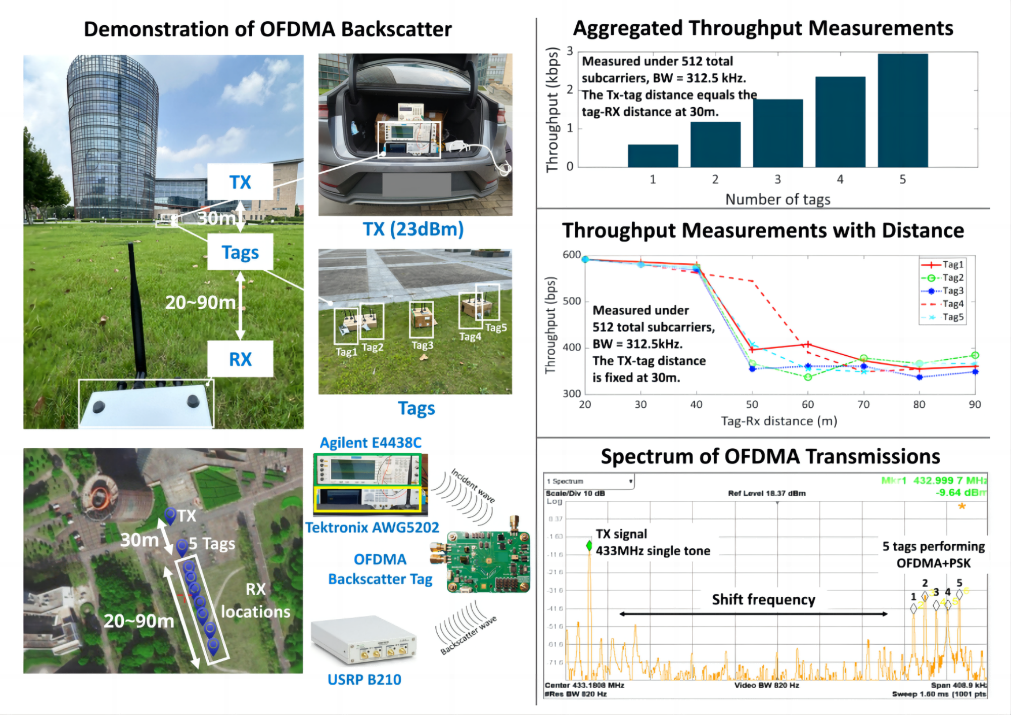 论文展示了一款具有软件定义调制的44μW OFDMA反向散射标签芯片,采用两级同步方法:唤醒接收机和同步接收机,实现了1 μs的同步精度和-51 dBm的射频接收灵敏度。为国际上首次支持多标签无碰撞反向散射传输芯片,并具有微瓦级别功耗,对于物联网设备的广泛部署意义重大。澳门永利皇宫官网入口团队负责SoC芯片的设计和流片,上海交通大学负责软件定义通信系统设计,双方合作完成芯片的测试工作。