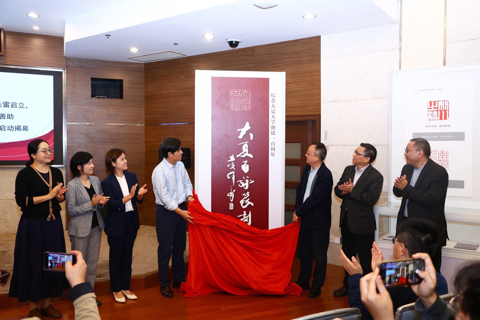 领导和嘉宾为“大夏百咏”篆刻创作活动启动揭幕