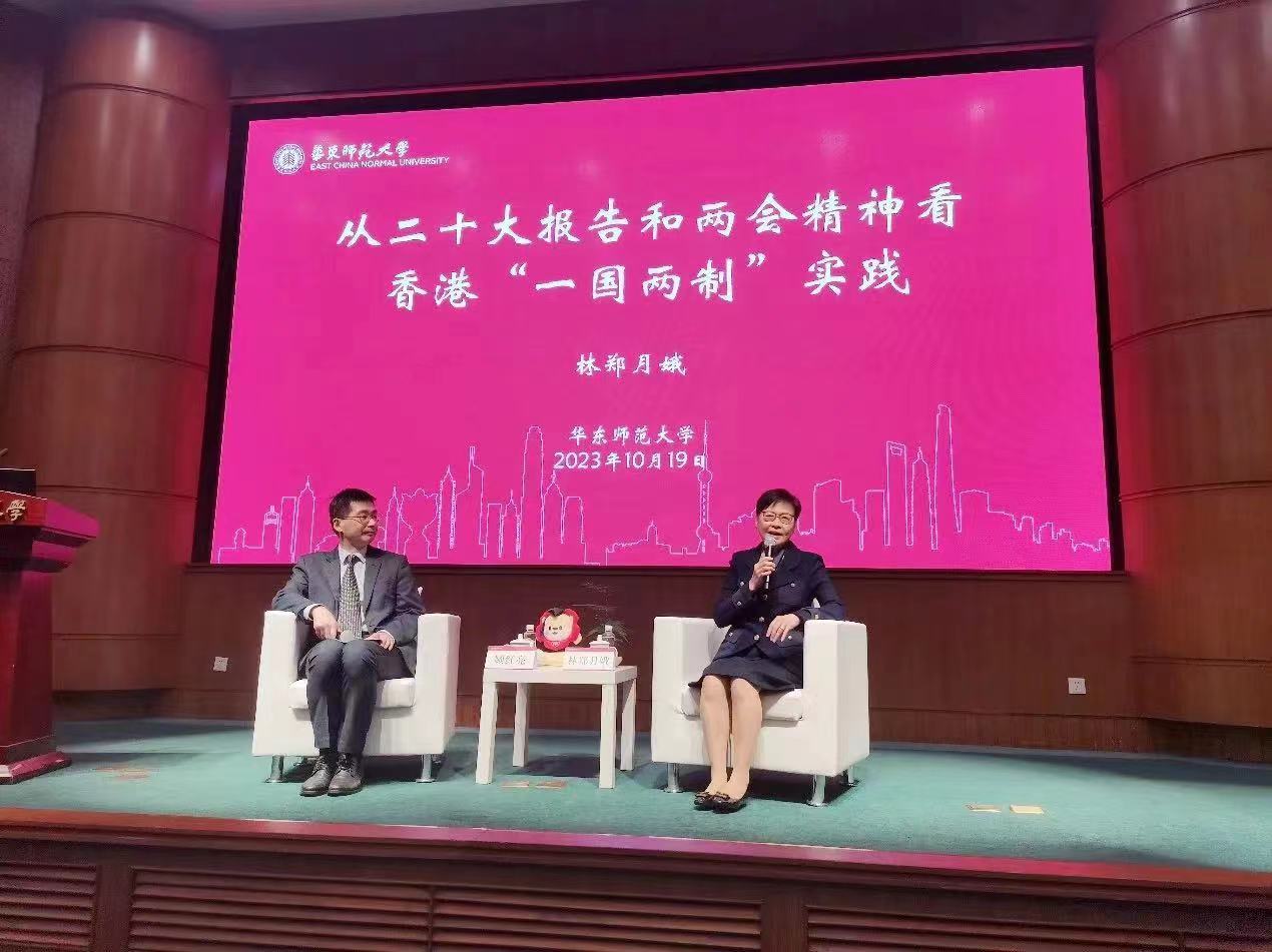 今天(10月19日),香港特别行政区前任行政长官林郑月娥女士访问澳门永利皇宫官网入口,作了题为《从二十大报告和两会精神看香港“一国两制”实践》的精彩报告并与师生互动交流。校党委书记梅兵,校长钱旭红,校党委副书记、副校长顾红亮会见林郑月娥女士并出席了报告会等活动。学校办公室、国际合作与交流处(港澳台办公室)相关负责人参加。