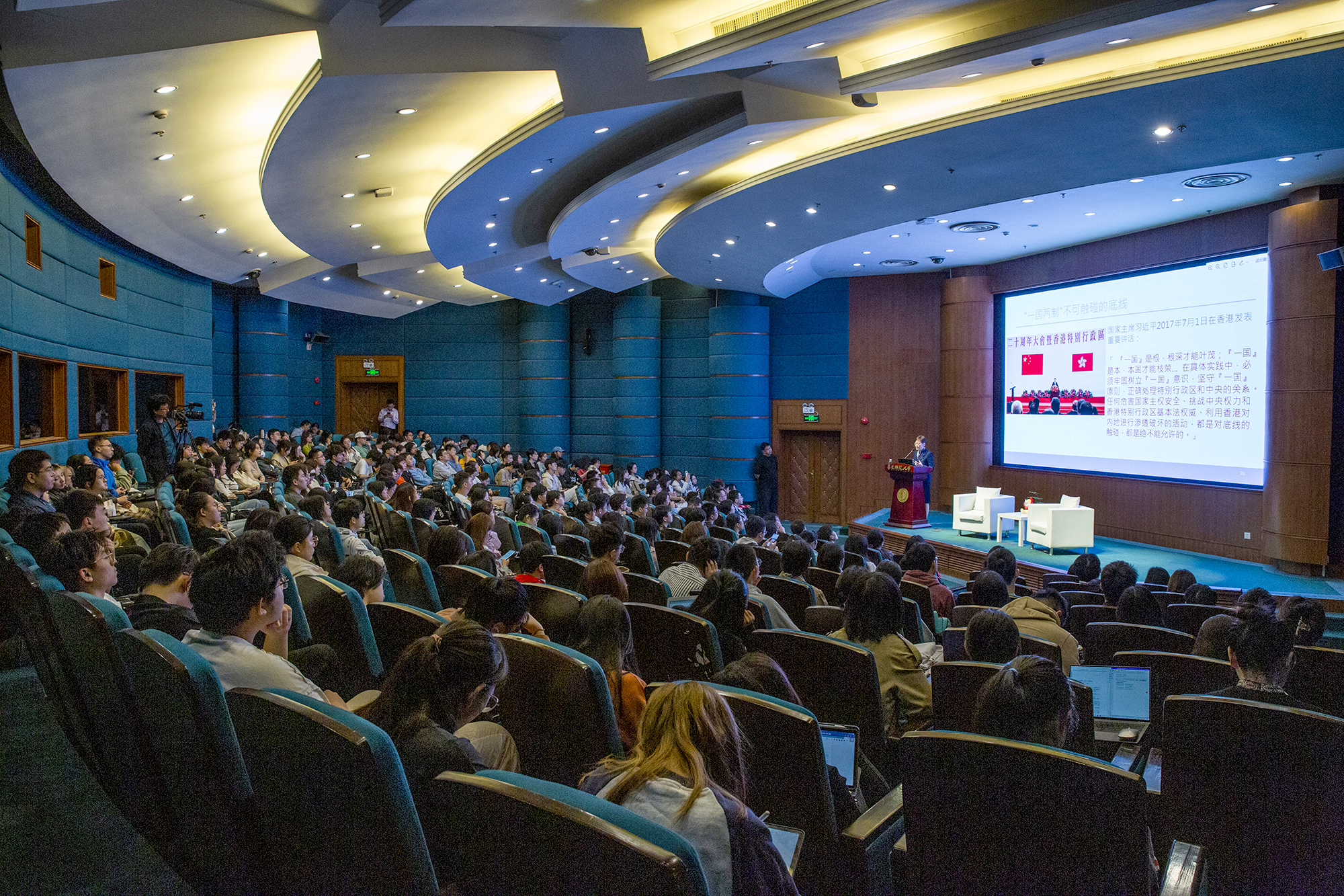 报告以《从二十大报告和两会精神看香港“一国两制”实践》为题。林郑月娥女士结合二十大报告和两会精神,阐述了“一国两制”产生的历史背景、由来与发展。同时,也深度剖析了“一国两制”在实践中遇到的困难。面对逆境,香港特区政府始终坚持和完善“一国两制”实践,通过建立和维护一系列法律制度、政策与措施,全面贯彻并长期坚持“一国两制”,开启了香港发展由治及兴的新征程、确定了香港发展的新局面与新未来。林郑女士特别提到了香港教育的机遇与挑战,同时,林郑女士向同学们介绍香港特区政府推行的多项人才计划,欢迎大家来港学习、实习、就业和发展。报告最后,她引用《李岚清教育访谈录》中“教育事业关乎国家民族的根本,地位之重,战线之长,困难之大,尤为甚也。”这句话勉励全体师生并祝愿澳门永利皇宫官网入口培养出更多心系祖国、精业济群的优秀人才。