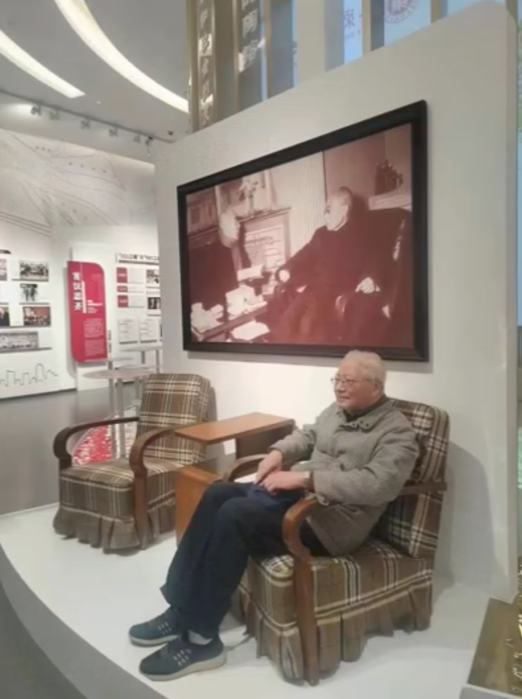 2021年,华东师大70周年校庆,孙培青在老师孟宪承先生的照片前留影
