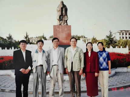 1998年10月 孙培青和研究生们在曲阜师大孔子像前