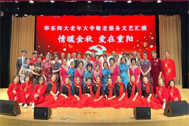 金秋十月,丹桂飘香。10月20日下午,在重阳节来临之际,华东师大老年大学组织师生志愿服务队赴普陀区甘泉街道社区文化活动中心,开展敬老服务进社区文艺汇演。甘泉路街道办事处副主任顾旻娜、华东师大老年大学常务副校长裴建华、甘泉社区服务办主任施明浩、上海善康源为老服务中心负责人毛建农以及甘泉社区居民200余人出席并观看演出。