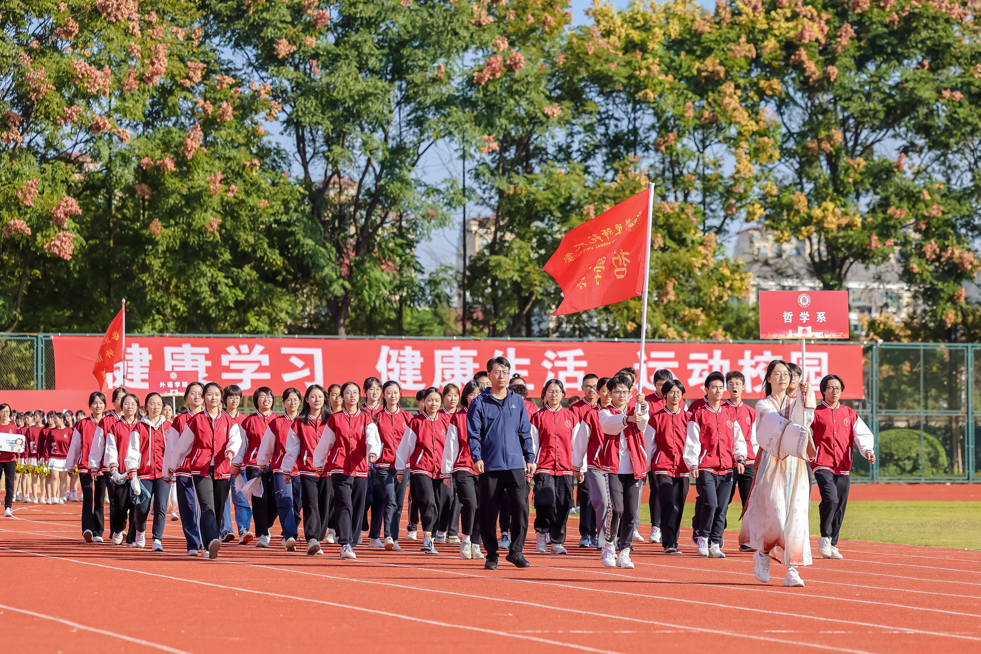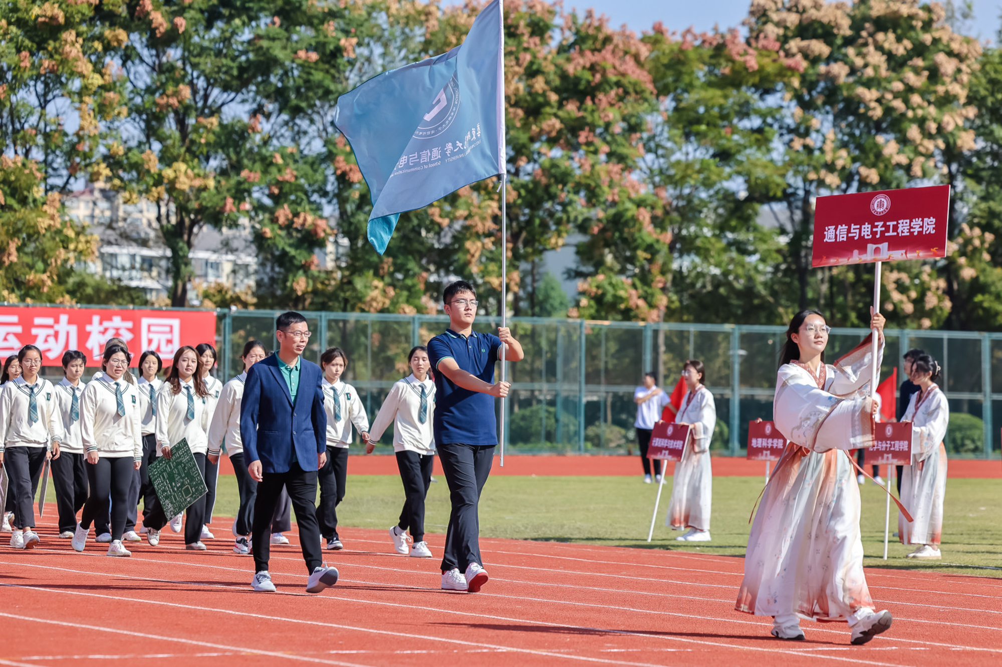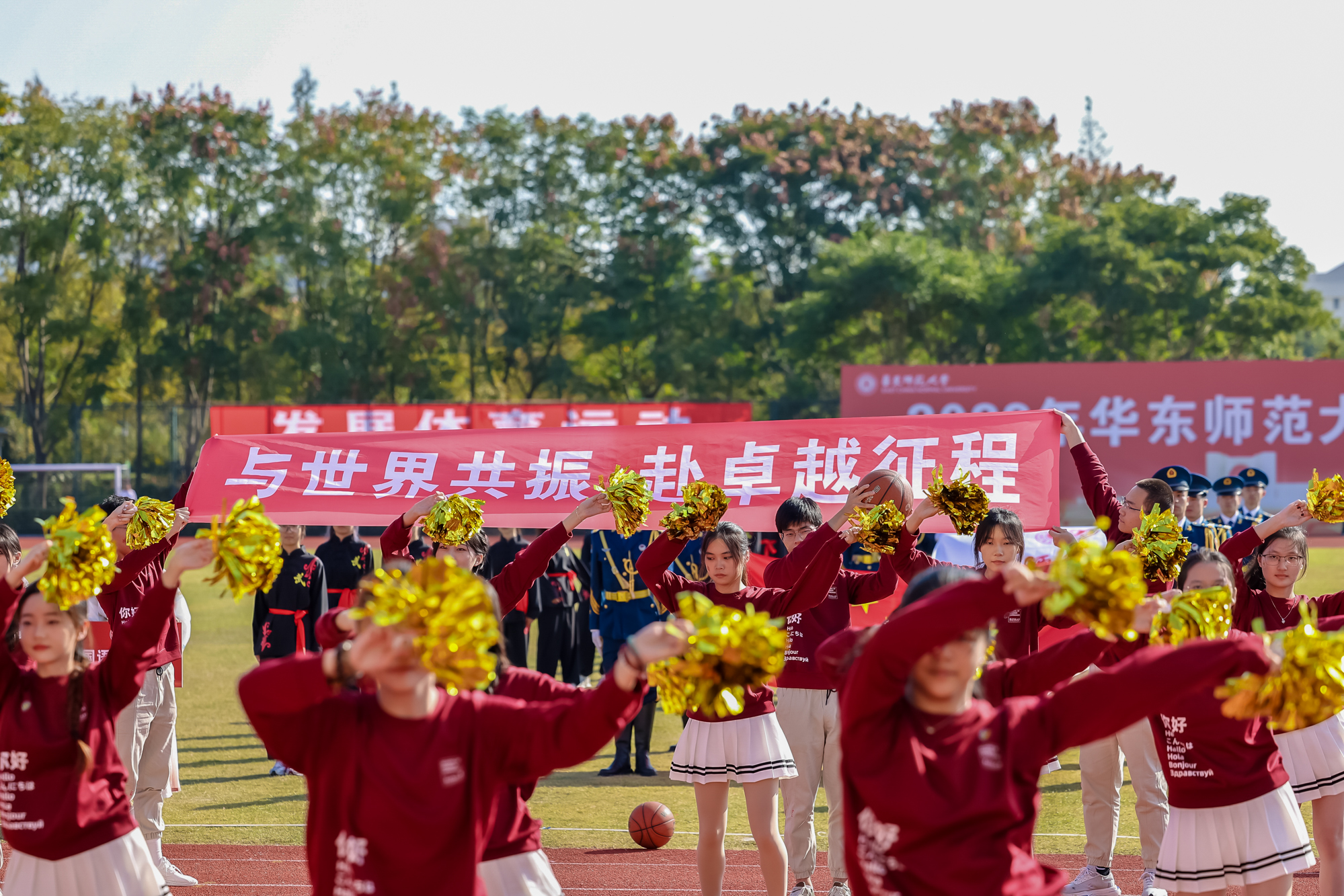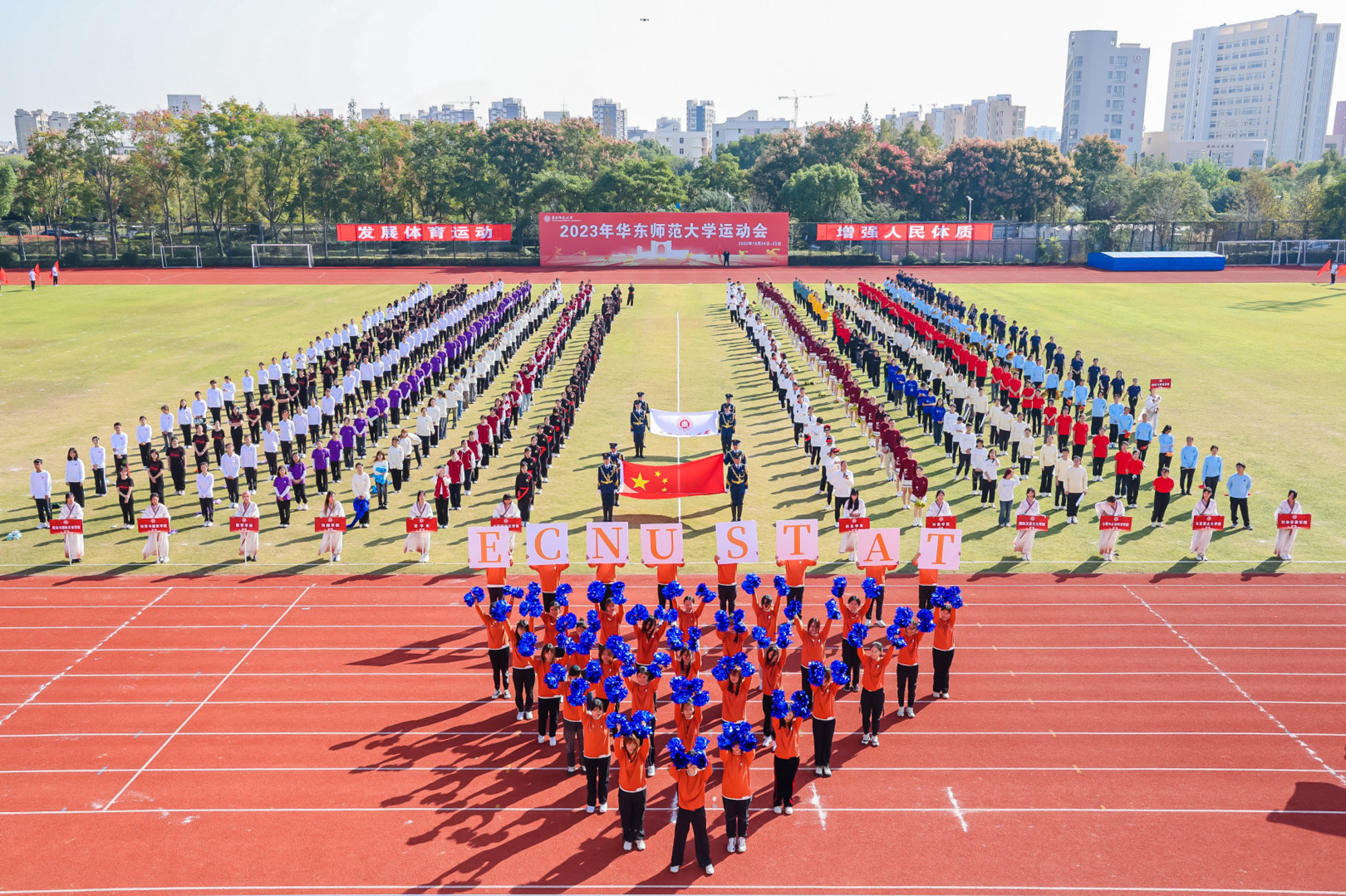 万里秋澄,惠风和畅,今日的华东师大活力四射,2023年华东师大运动会开幕式在闵行校区东区田径场举行。