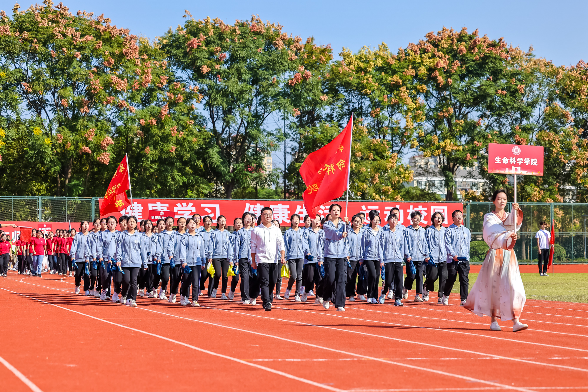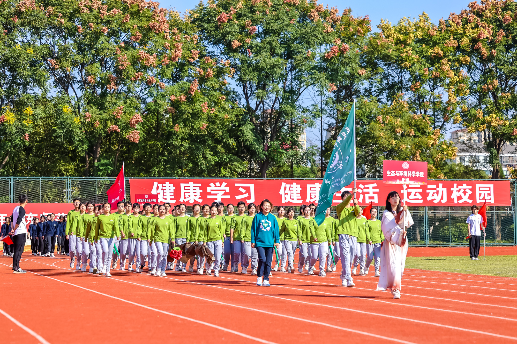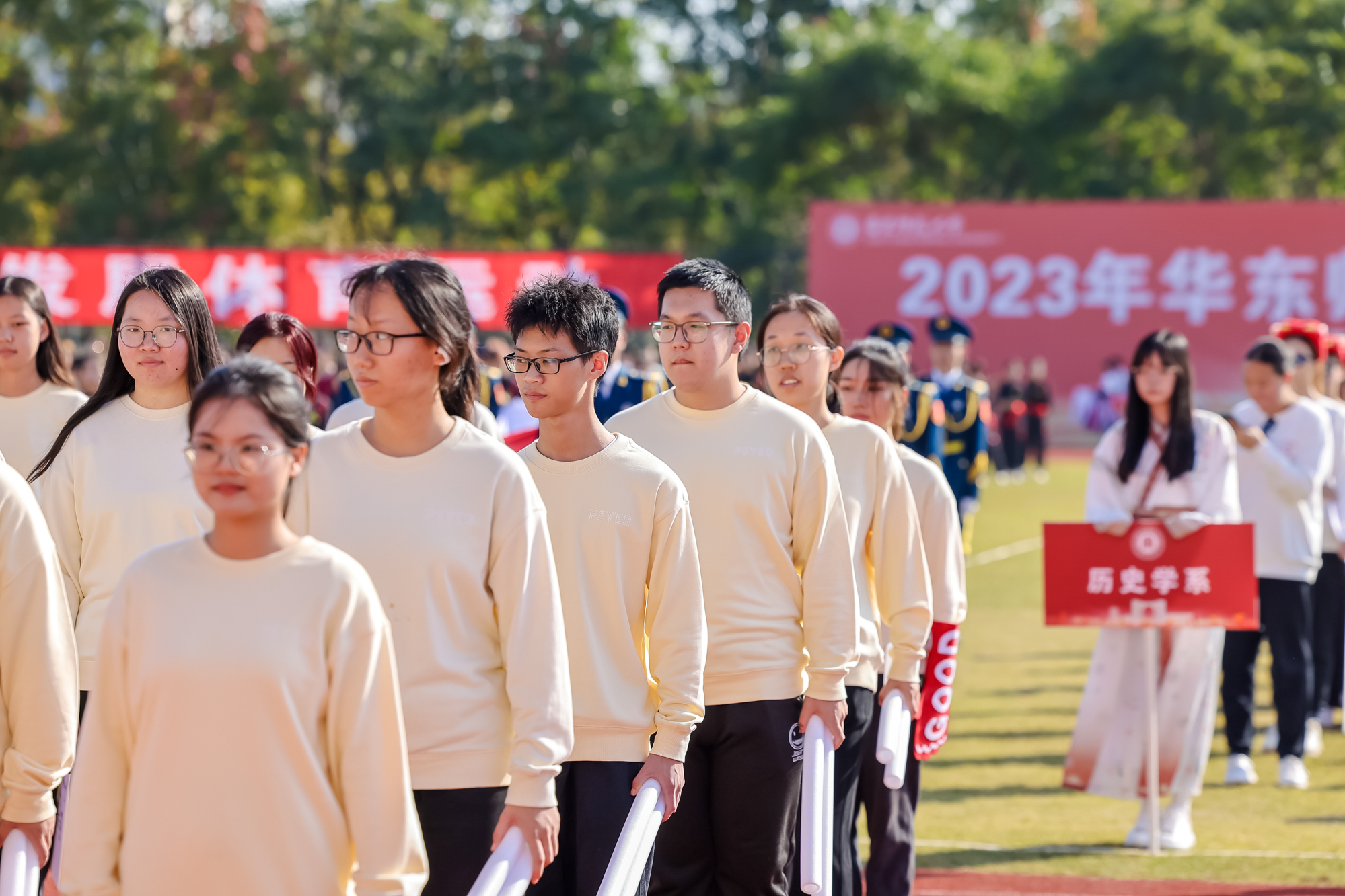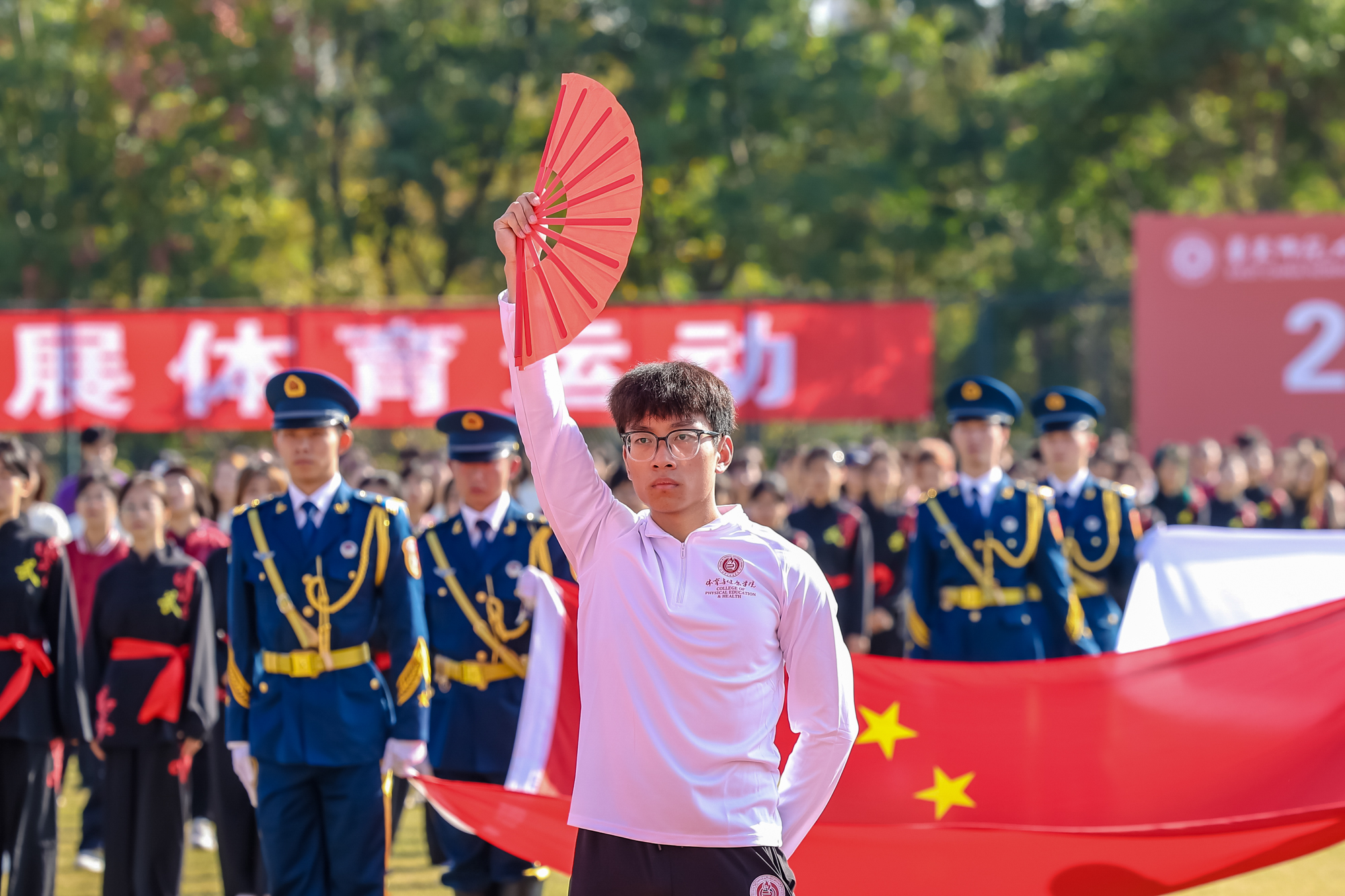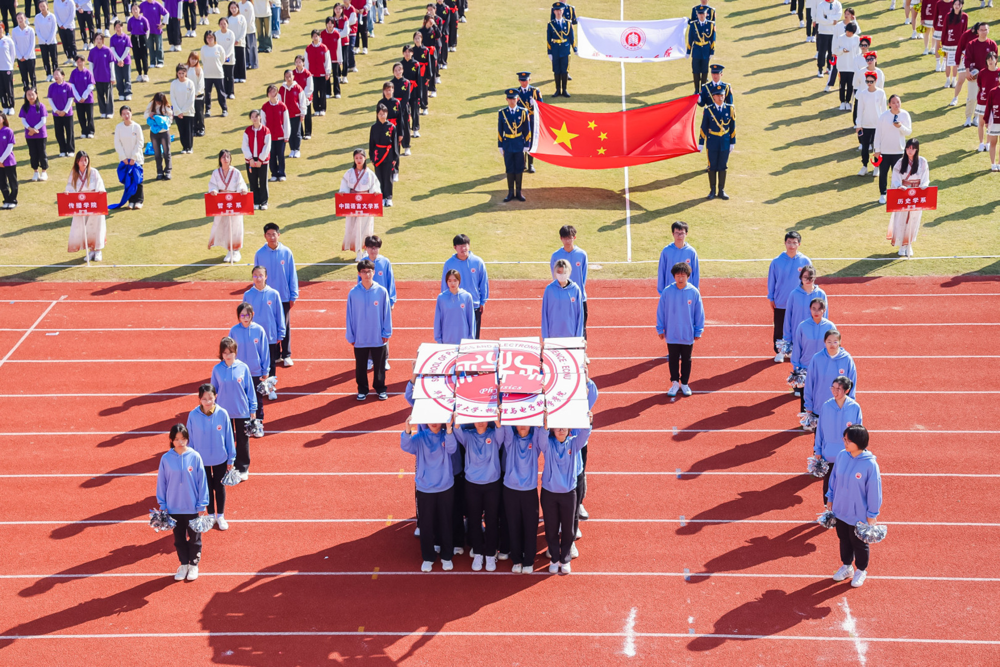 万里秋澄,惠风和畅,今日的华东师大活力四射,2023年华东师大运动会开幕式在闵行校区东区田径场举行。