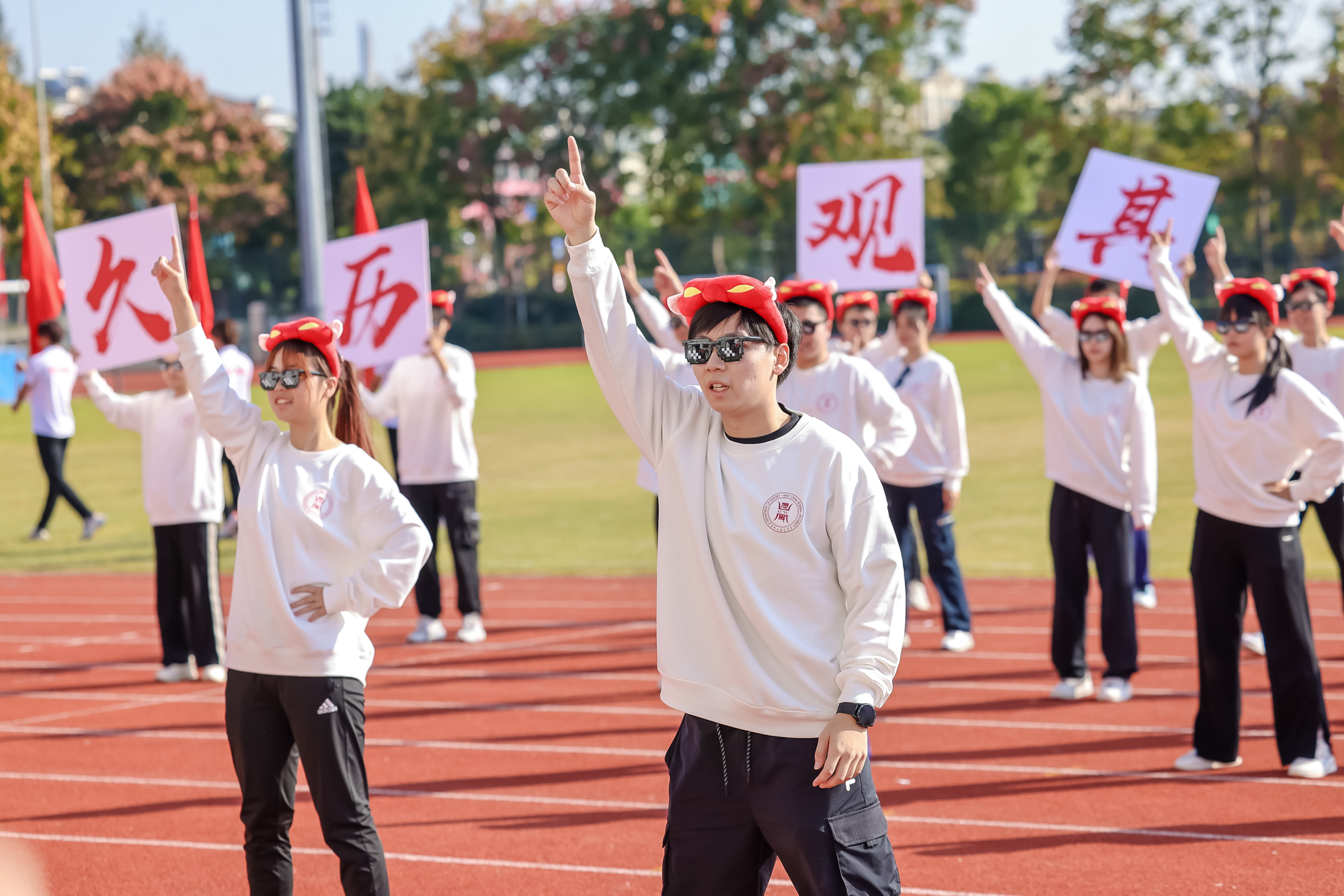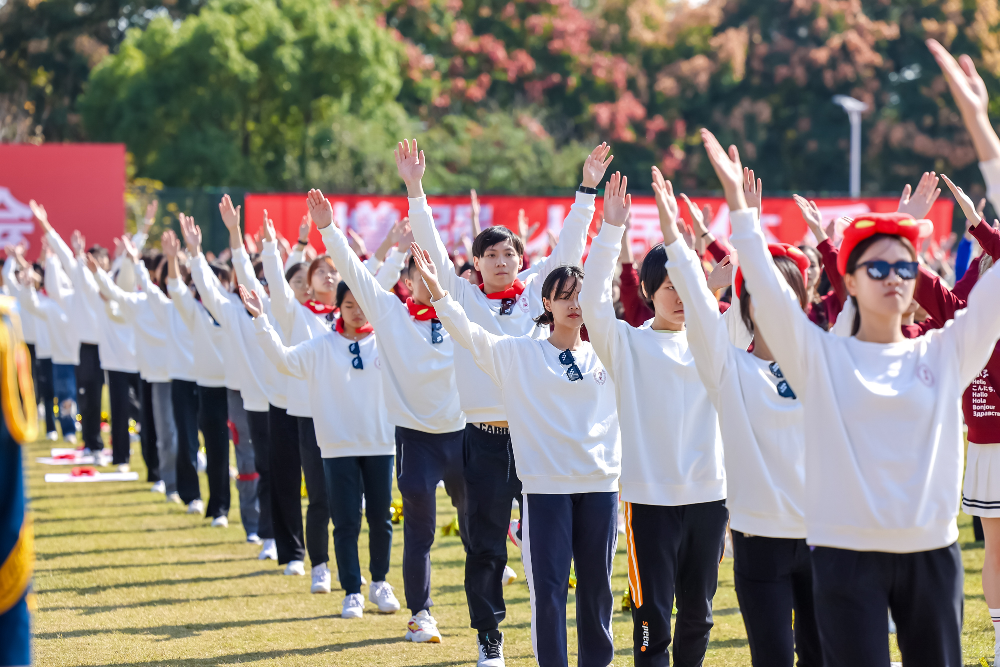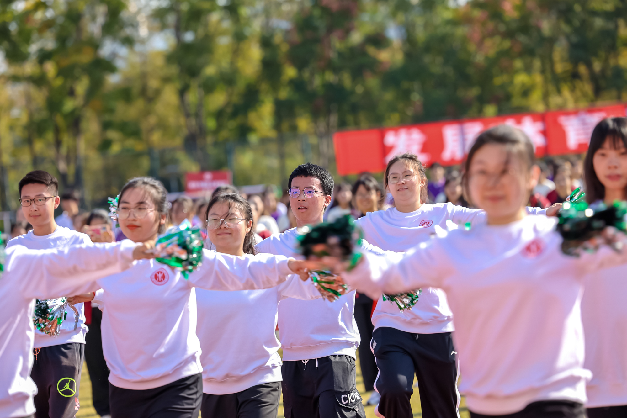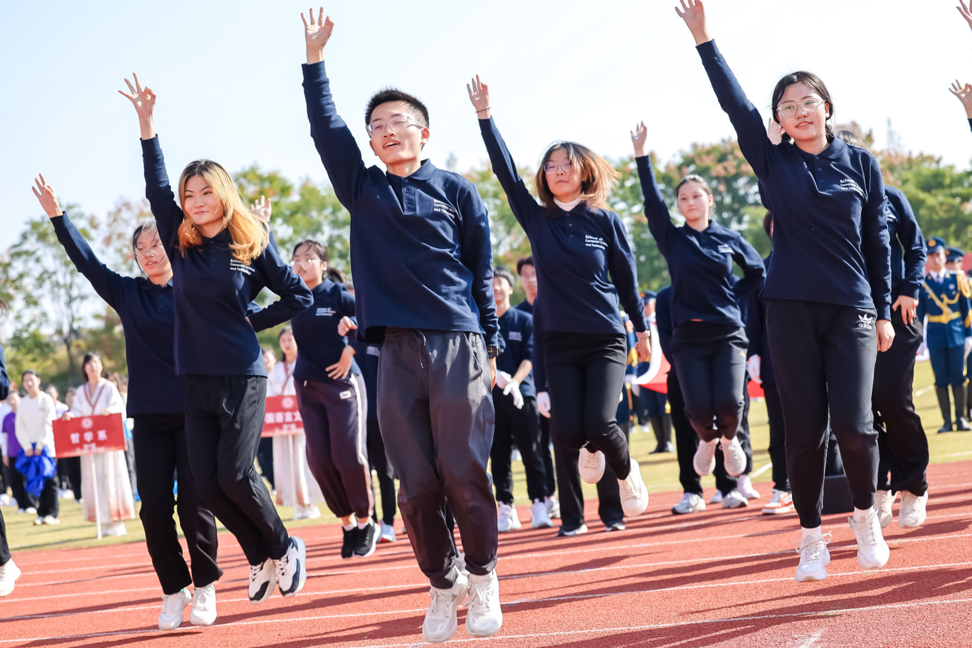 开幕式上还举行了学生代表队、教工代表队的广播操比赛,进行了学生团体操展示及教工太极拳表演。师生带着满满的参与感,为运动会开幕式增添了一层欢快热烈的气氛。本届运动会为期两天,运动员们将在校运会30余项比赛中展开角逐。