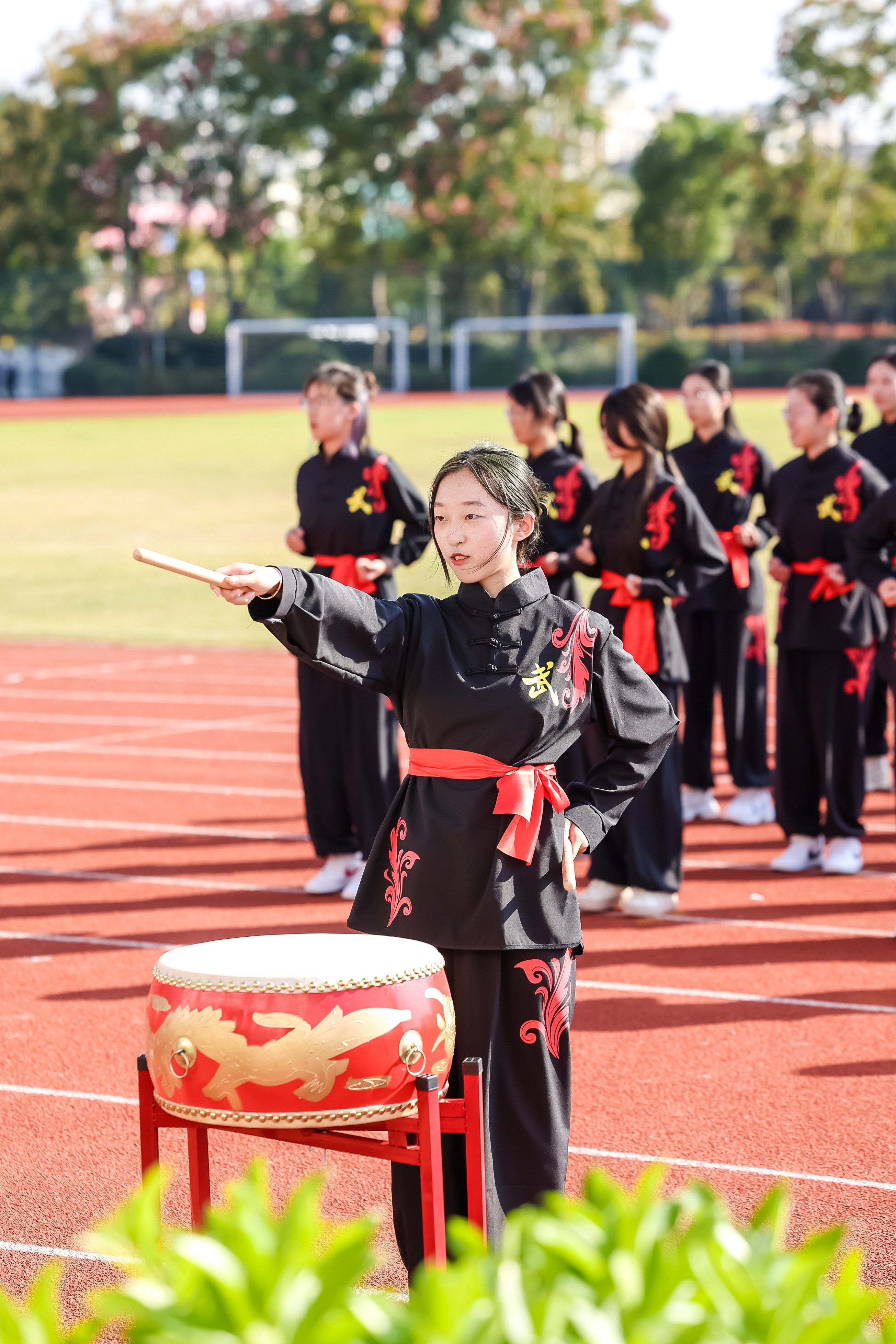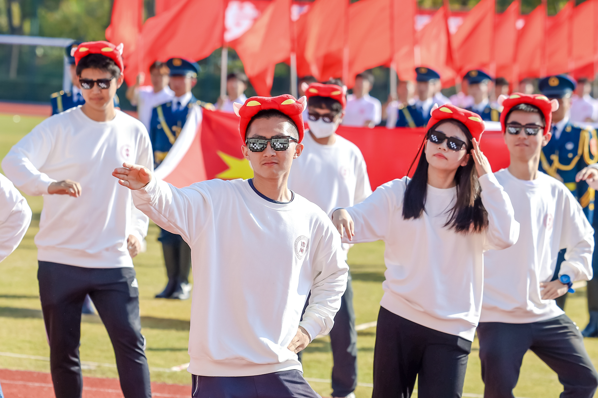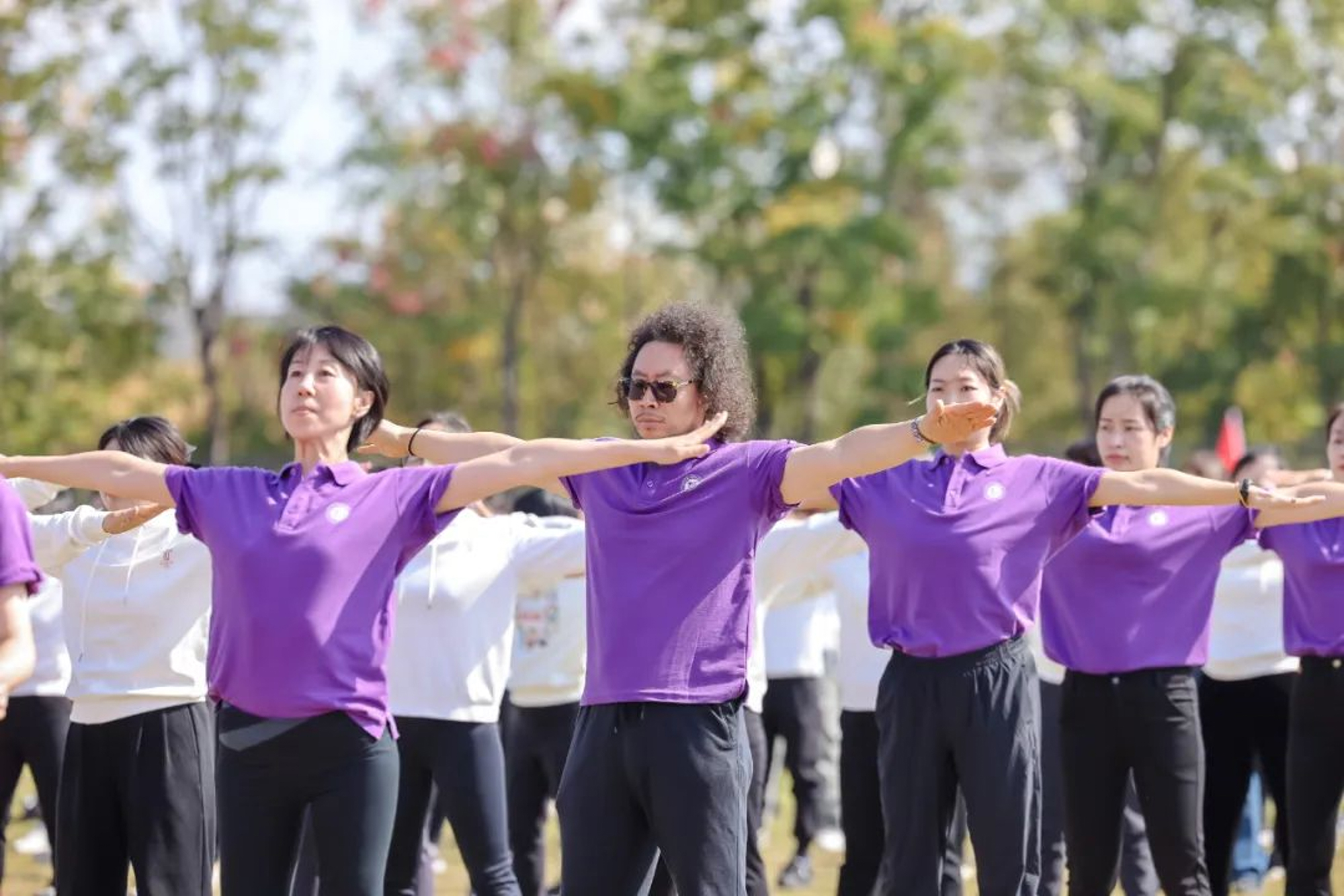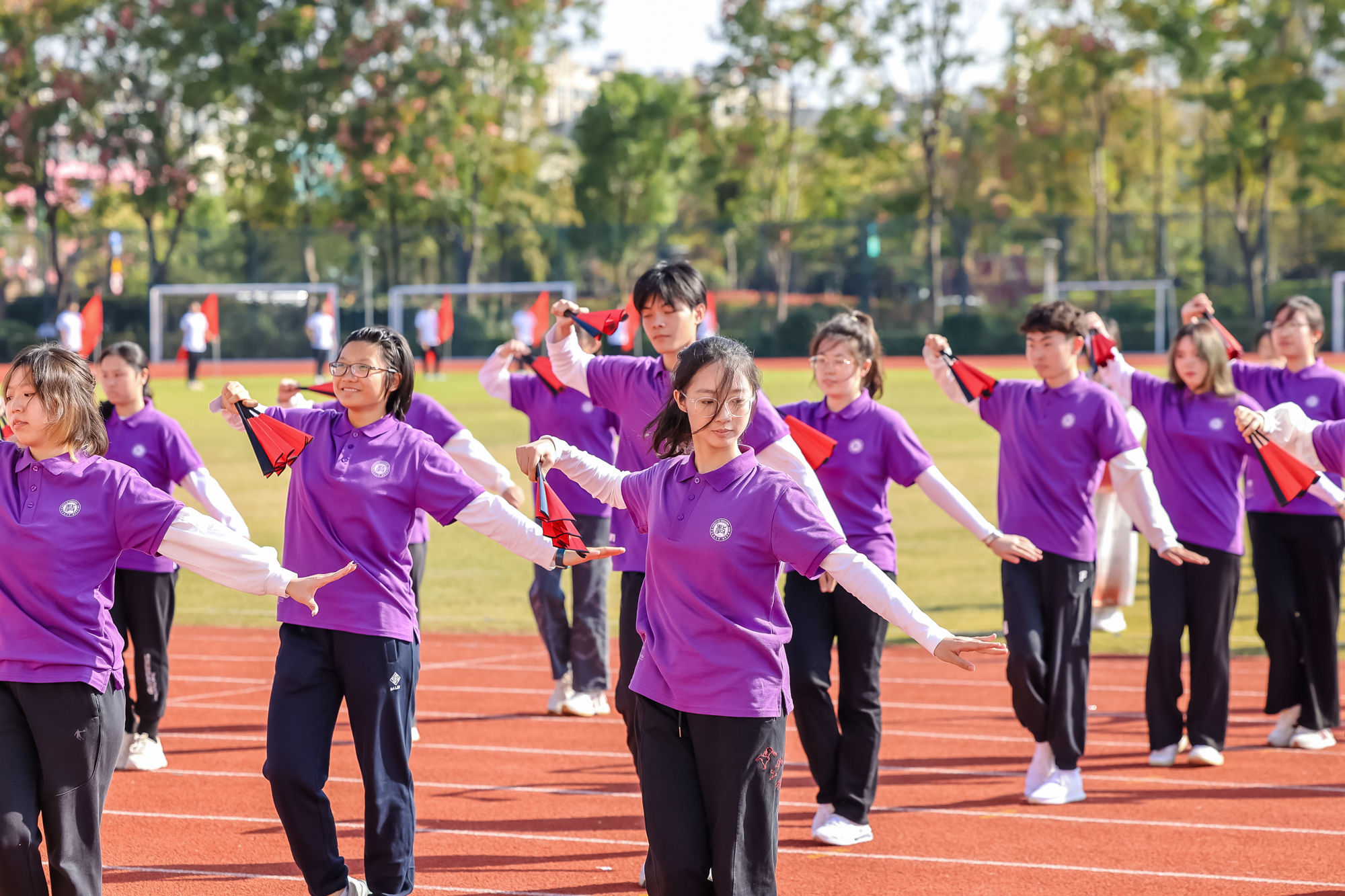 开幕式上还举行了学生代表队、教工代表队的广播操比赛,进行了学生团体操展示及教工太极拳表演。师生带着满满的参与感,为运动会开幕式增添了一层欢快热烈的气氛。本届运动会为期两天,运动员们将在校运会30余项比赛中展开角逐。