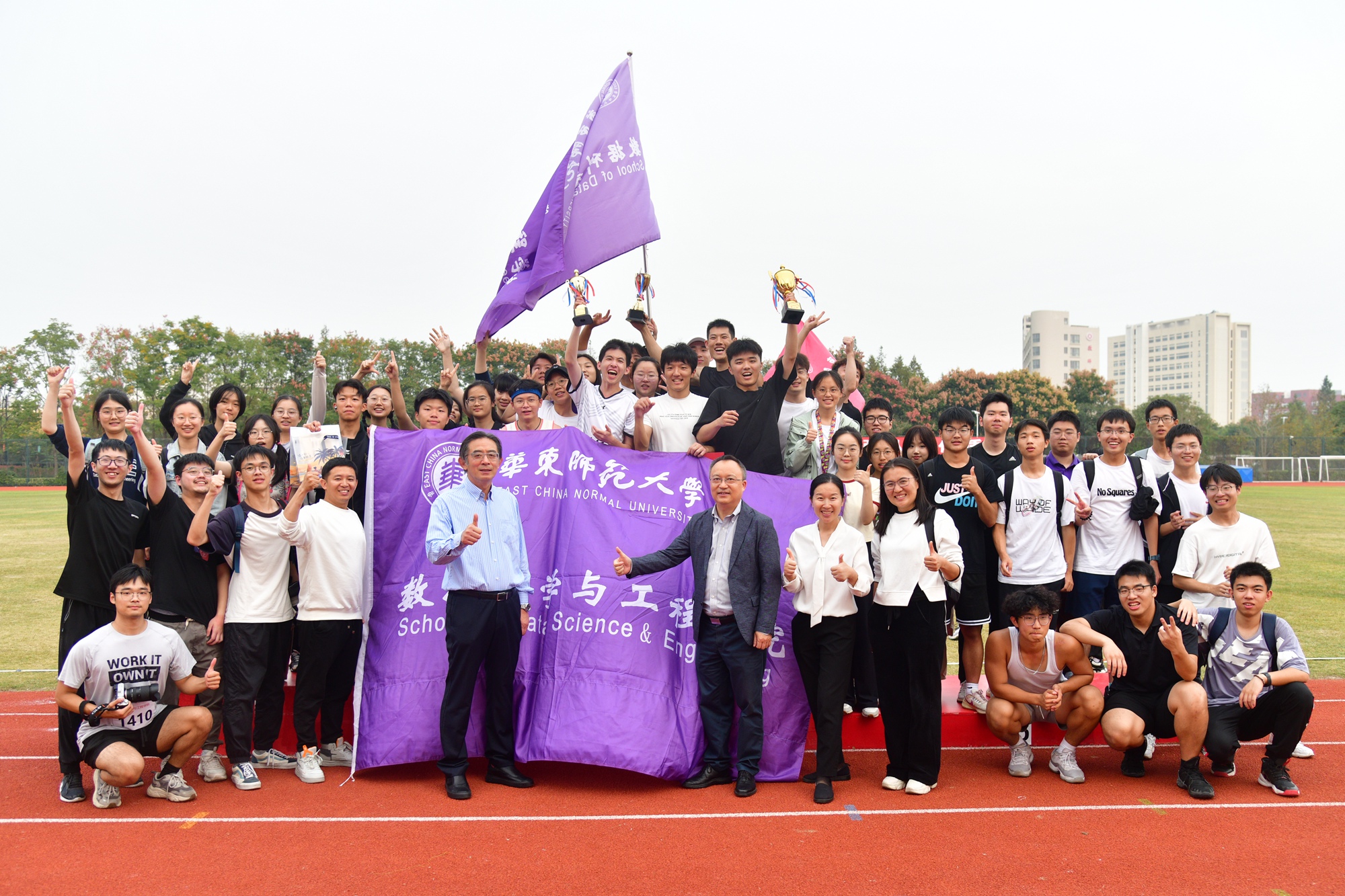 经过两天激烈角逐,各项比赛尘埃落定。10月25日下午,2023年校运动会闭幕式在闵行校区东田径场举行,副校长雷启立致闭幕辞并为获奖团队代表颁奖。
