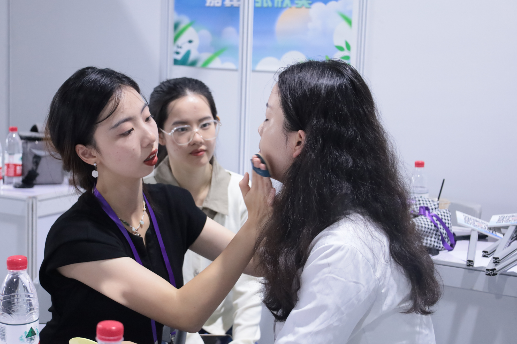在“妆”点魅力·赋能职场展位,同学们体验了简洁大方、干净利落的职场妆容。