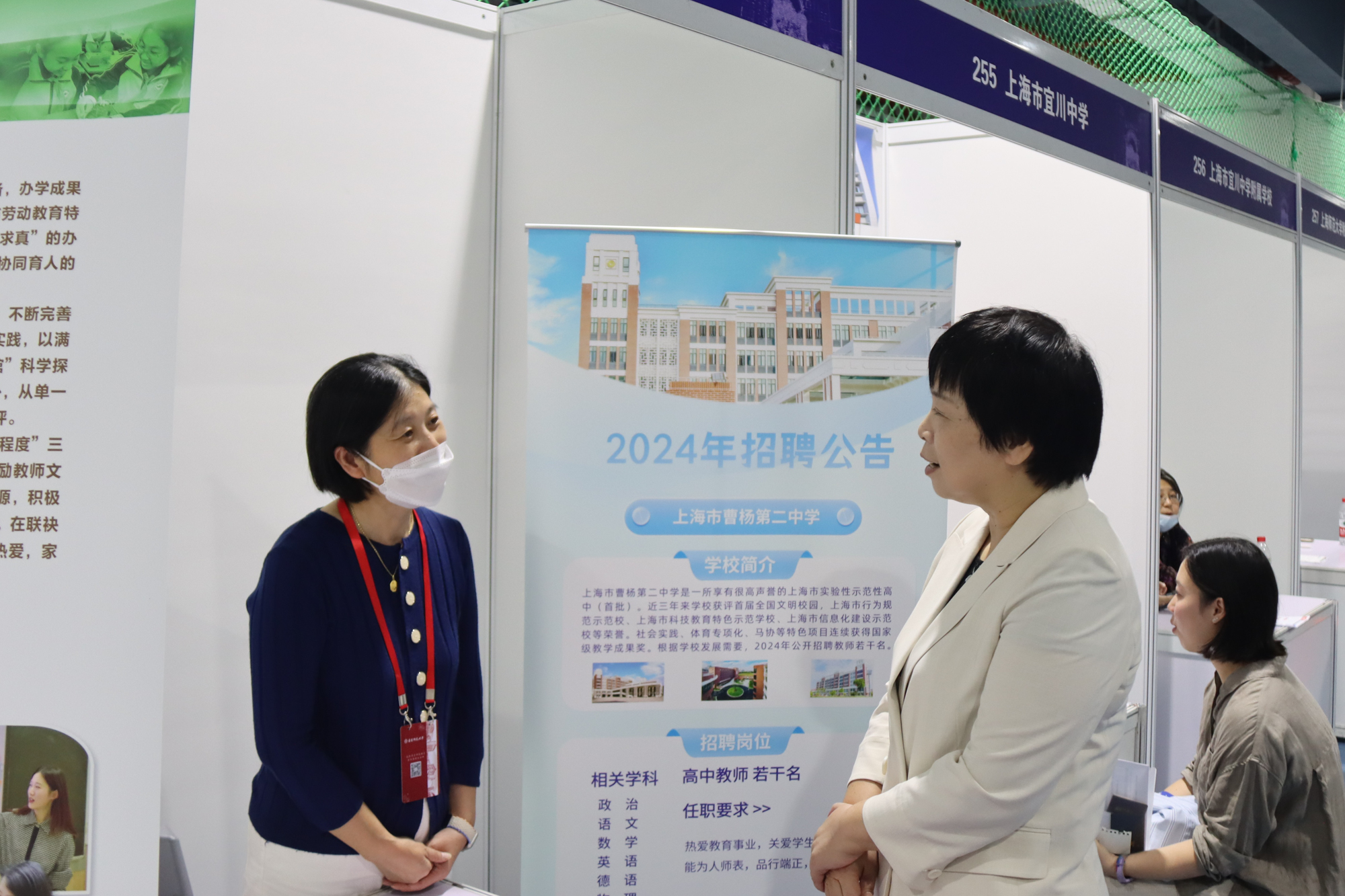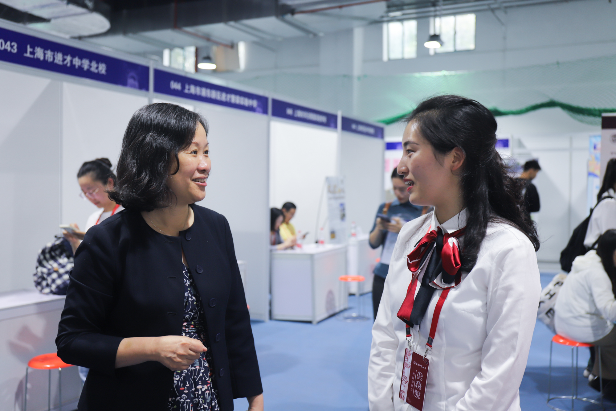 上海第三初级女子中学的王老师表示,“华东师大的招聘会我们每年都来,今年招聘岗位较多,希望同学们积极投递简历。”洛阳市第一高级中学的宋校长表示:“这次从河南来到华东师大,希望能够招到高学历的优秀人才。”作为第一次来到华东师大招聘会现场的用人单位,洛阳市第一高级中学提供的发展机遇与引进人才待遇都充满诚意,很有吸引力。