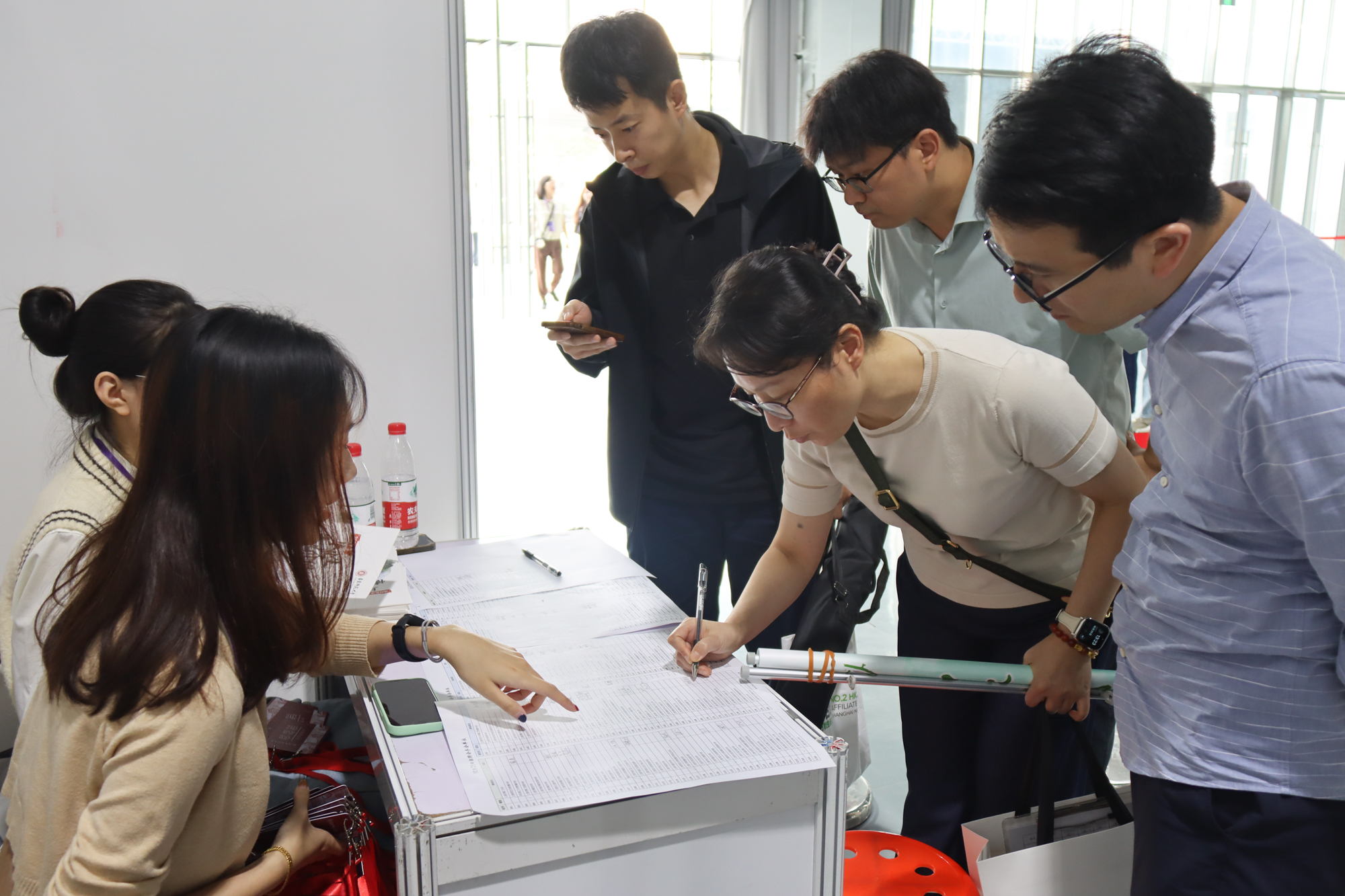 现场气氛热烈,同学们在等候期间交流面试经验,积极向用人单位了解岗位需求,有序排队投递简历。
