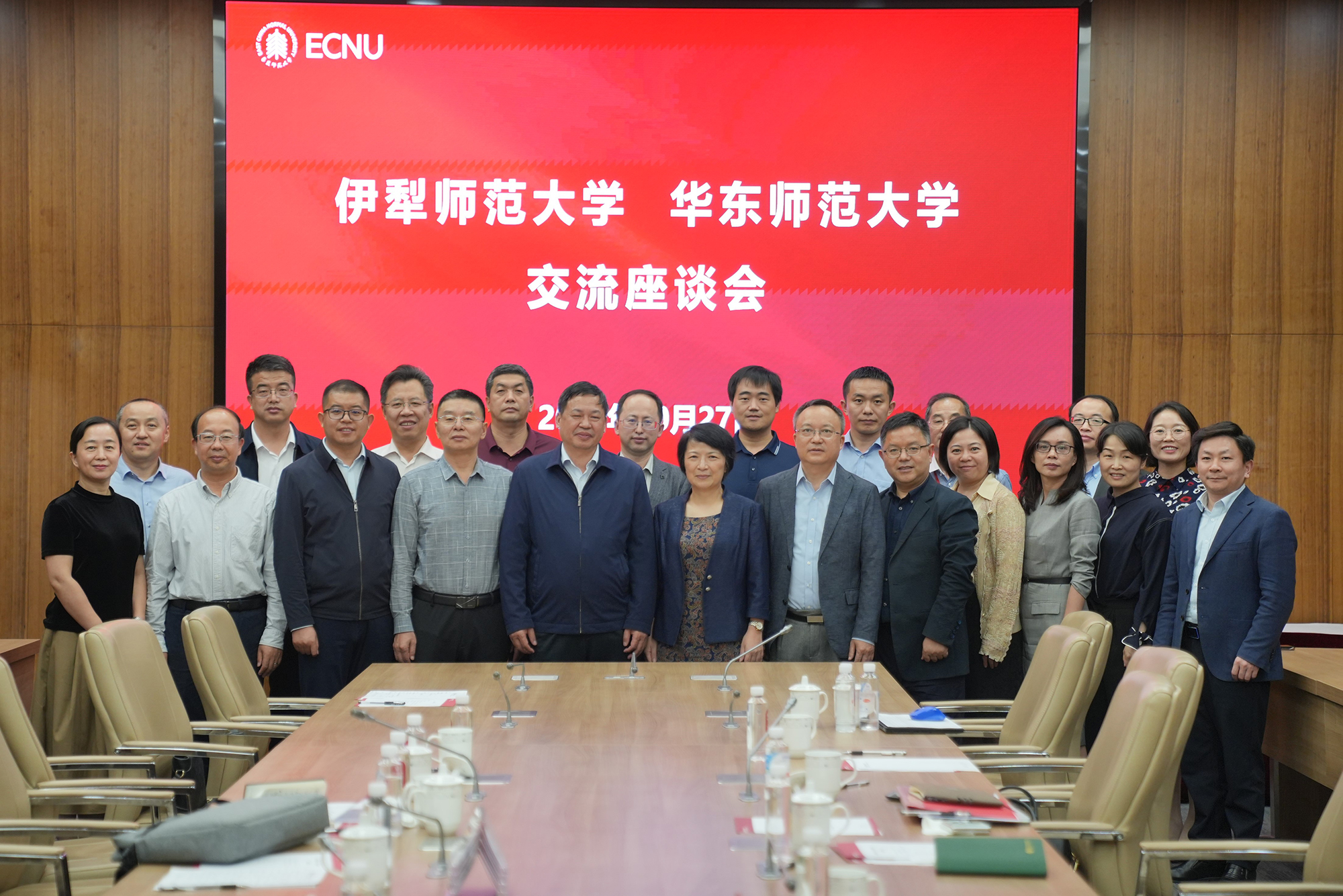 会上,两校相关负责同志就教育教学改革、师资队伍建设、人才引进与短期交流、科学研究、对外交流合作等工作领域进行了深入探讨。伊犁师大党委常委、组织人事部部长冯跃武,华东师大党委常委、统战部部长、学校办公室主任张惠虹,两校有关部门、院系负责人参加座谈会。