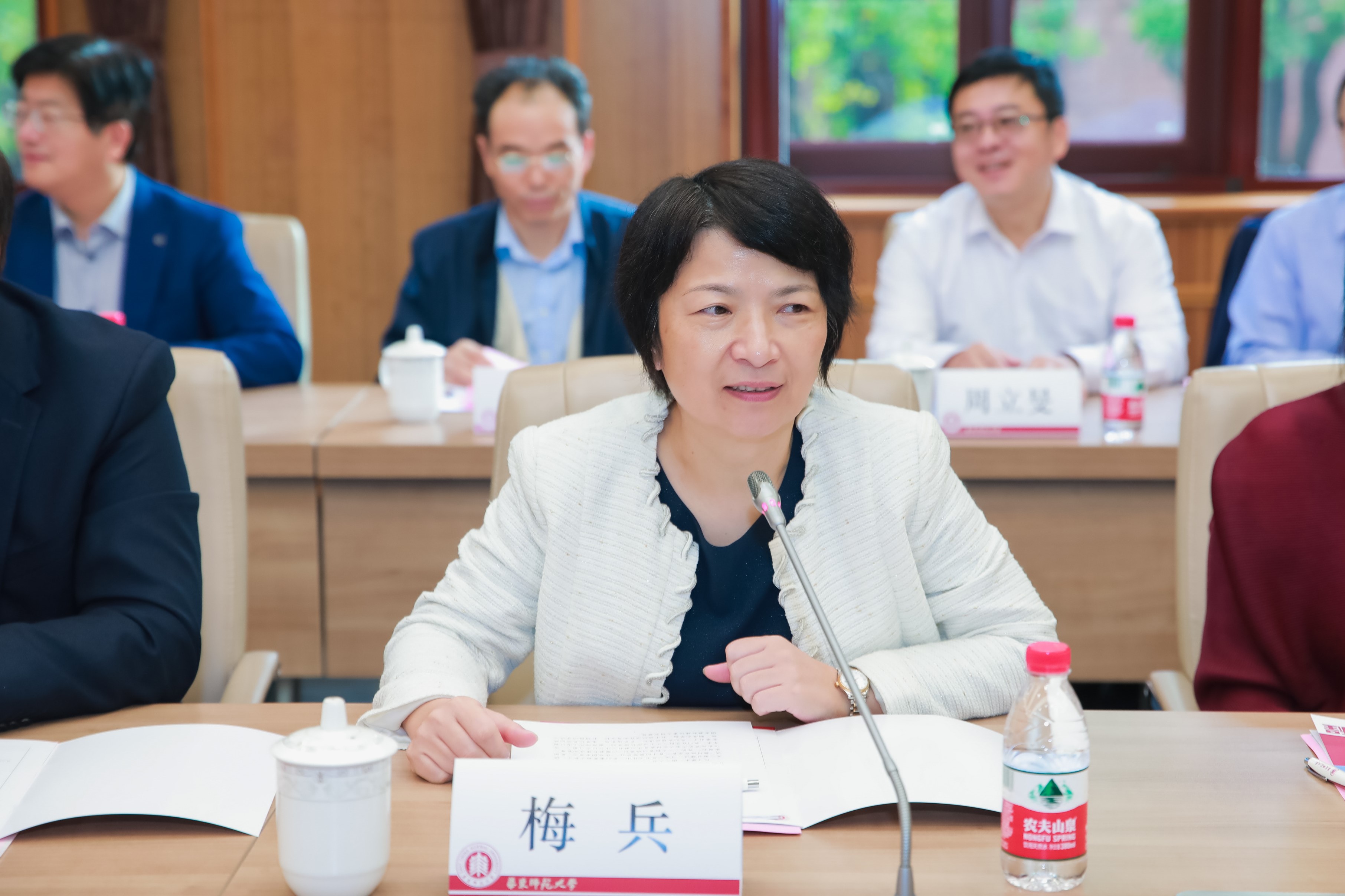 梅兵在致辞中,感谢教育部教材局、上海市教委的信任和支持。党的十八大以来,党中央高度重视和关心教材建设,华东师大在教材建设方面有着良好的传统和基础,于2019年成立了教材研究院,力求统筹相关资源力量,合力推进教材建设、管理和研究等工作。她表示,华东师大地理教育学科一直是国家地理课程教材建设与研究的重要力量,人才辈出,学校将全力支持地理基地的建设工作,以国家重大战略需求为牵引,在教材建设研究、教材数据、咨询服务、成果交流、人才队伍建设等方面系统谋划、扎实推进,提升教材建设科学化专业化水平、支撑高水平人才自主培养和拔尖创新人才培养、服务教育强国建设。