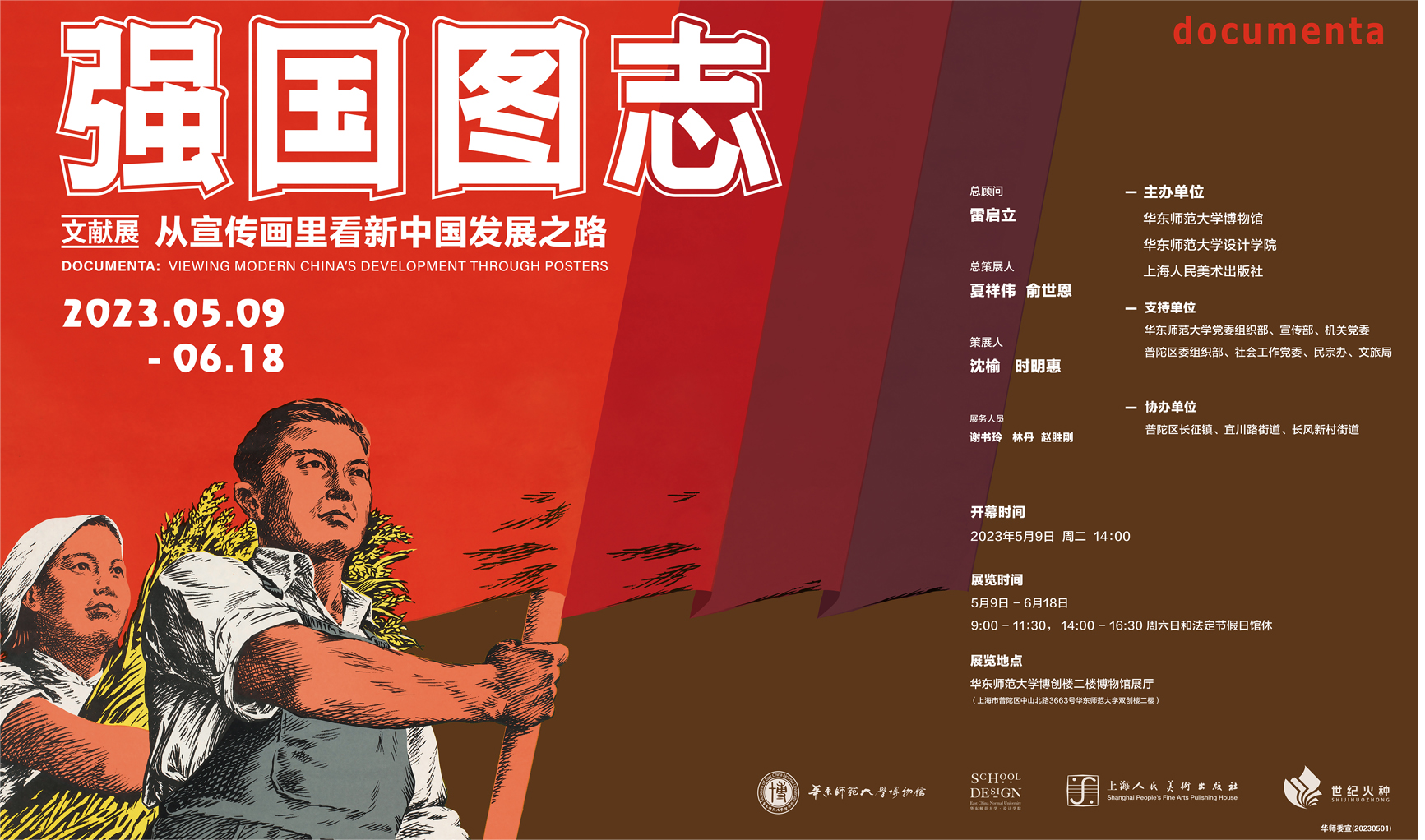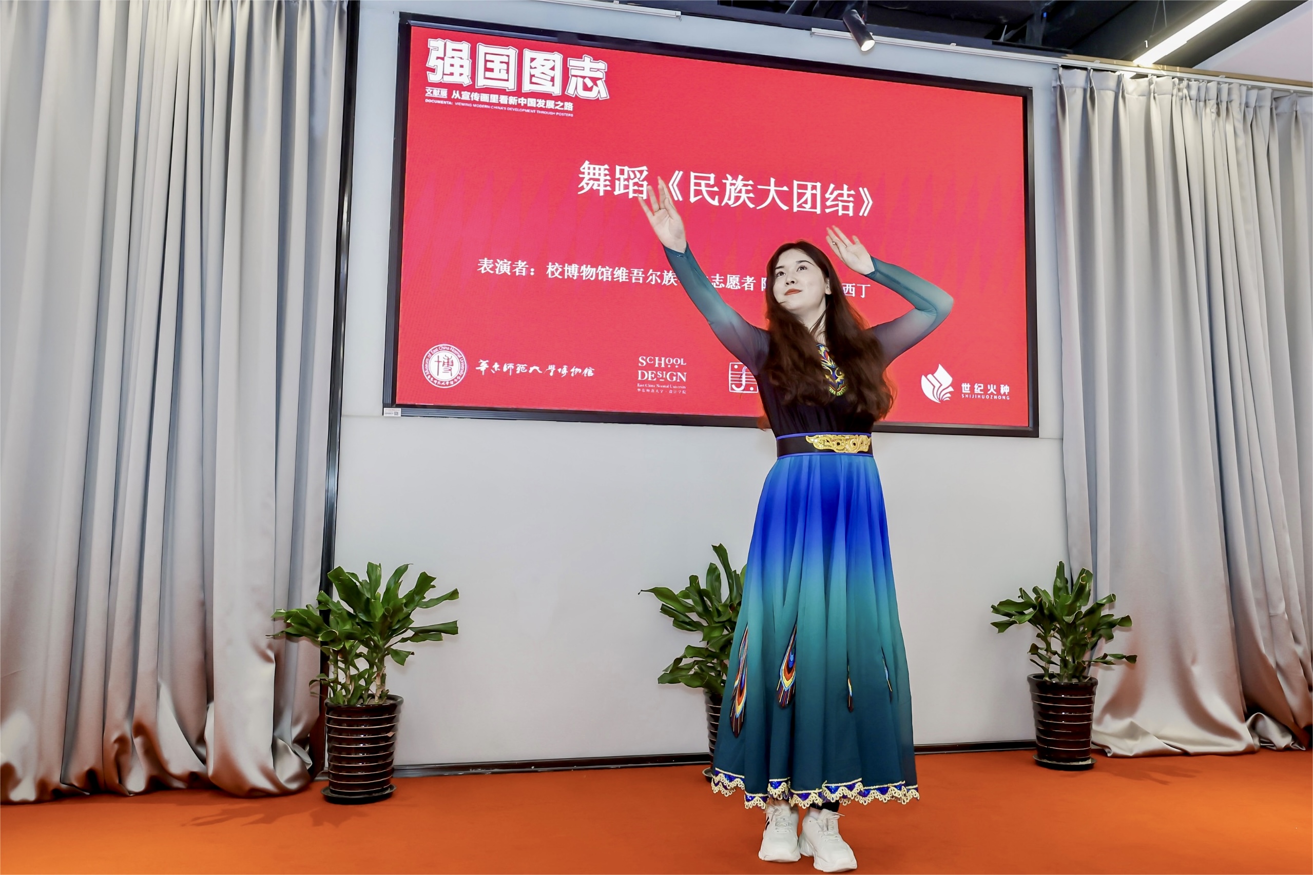 华东师大博物馆注重开办有特色的活动和项目,打造构筑共有精神家园、铸牢中华民族共同体意识的品牌,充分利用重大历史事件、重要节庆、纪念日和传统节日,精心设计策划、组织开展内容丰富生动的主题活动。近年来,已组织举办“陶熔鼓铸——印纹硬陶文物展”“永远的长征:舒同舒安书画巡展”“博物馆+社区·强国图志:从宣传画里看新中国发展之路主题展”“百年苏子·渊默雷声——纪念苏渊雷教授诞辰115周年诗书画印文献珍品展”等主题展览,取得了明显成效。如“强国图志”主题展,其中涉及展示新中国民族团结政策的宣传画,能够彰显各民族共同开拓辽阔疆域、书写悠久历史、创造灿烂文化、培育伟大民族精神的历史史实,讲好中国故事、中国共产党故事、新时代中国特色社会主义故事、民族团结进步故事,引导各族人民进一步增强“四个意识”、坚定“四个自信”、做到“两个维护”,牢固树立休戚与共、荣辱与共、生死与共、命运与共的共同体理念。