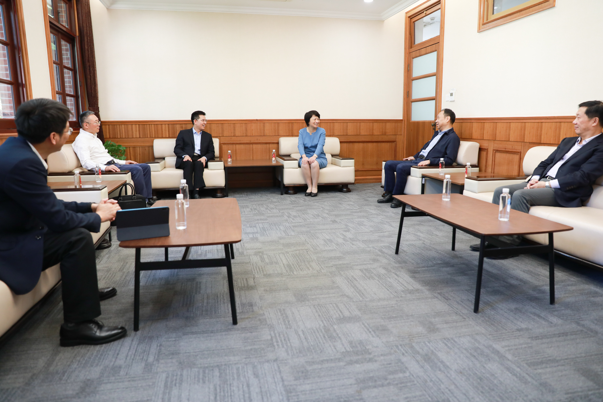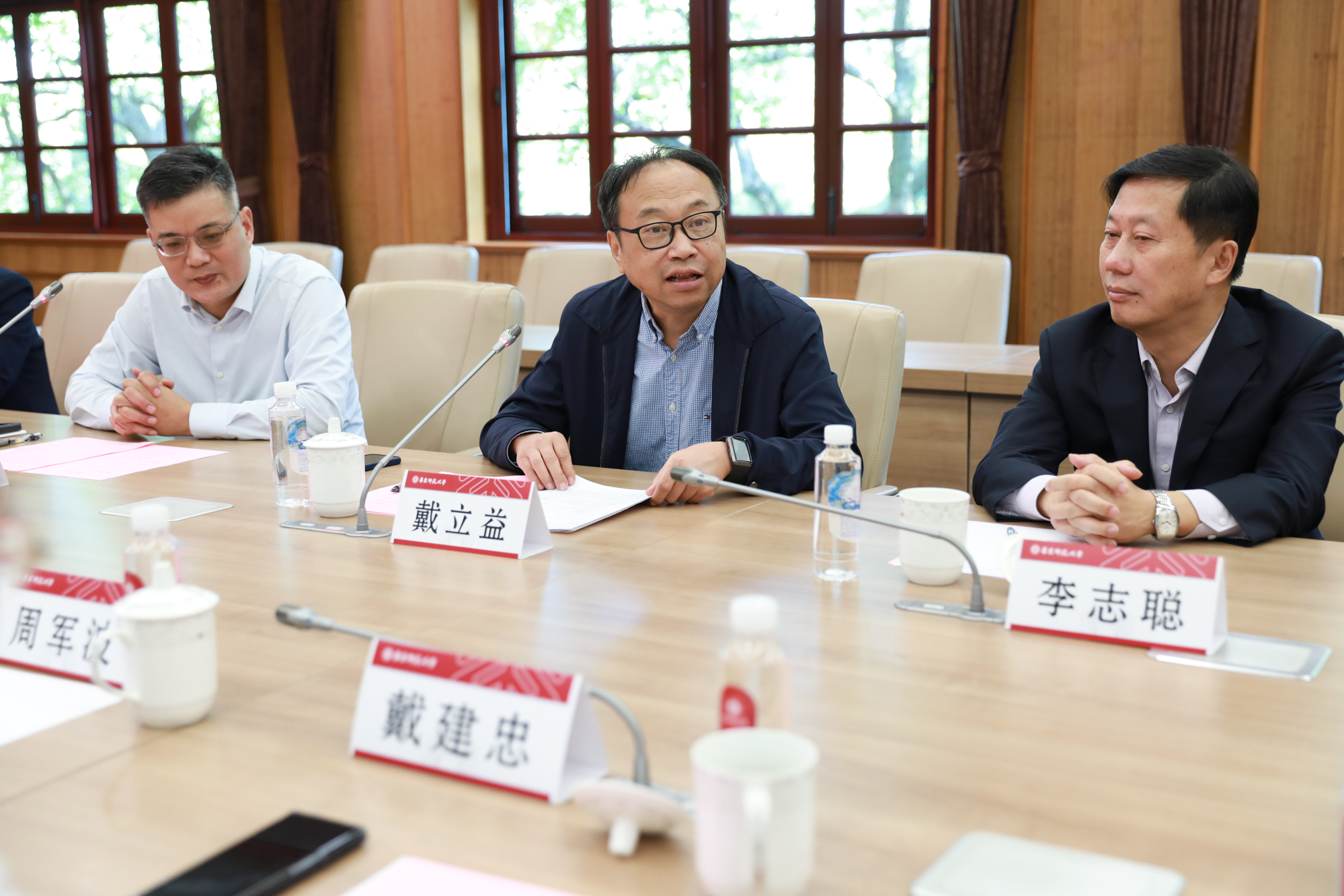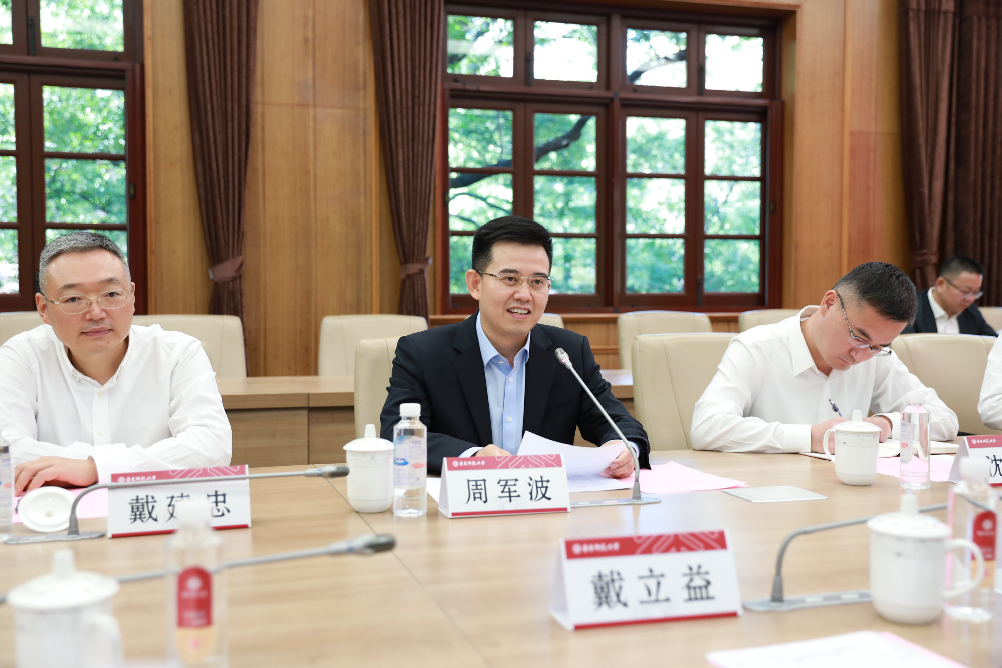 会前,华东师大党委书记梅兵会见平湖市委副书记、市长周军波,副市长戴建忠一行。