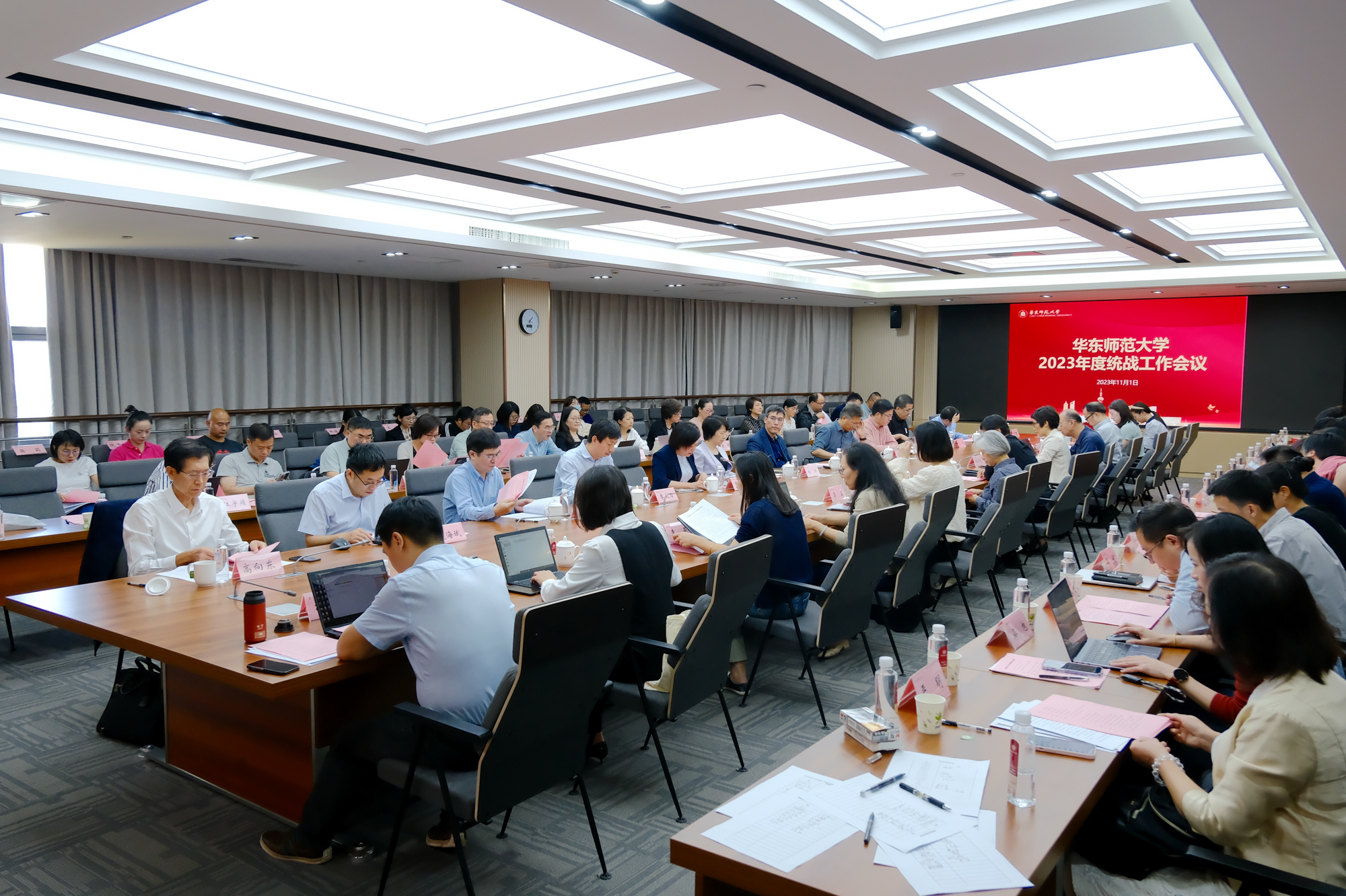 为深入学习贯彻落实习近平总书记关于做好新时代党的统一战线工作的重要思想及有关重要会议精神,表彰先进,交流经验,研究部署新时期学校统战工作,华东师大于11月1日在闵行校区召开2023年度统战工作会议,校党委书记梅兵、党委副书记孟钟捷出席会议。会议由校党委常委、统战部部长、学校办公室主任张惠虹主持。学校党委统一战线工作领导小组成员单位、宗教工作领导小组负责人、院系级党组织统战工作负责人、相关单位分管领导、院系统战联络员,各民主党派、统战团体负责人,2022年度澳门永利皇宫官网入口统一战线先进个人表彰对象等近80人参会。