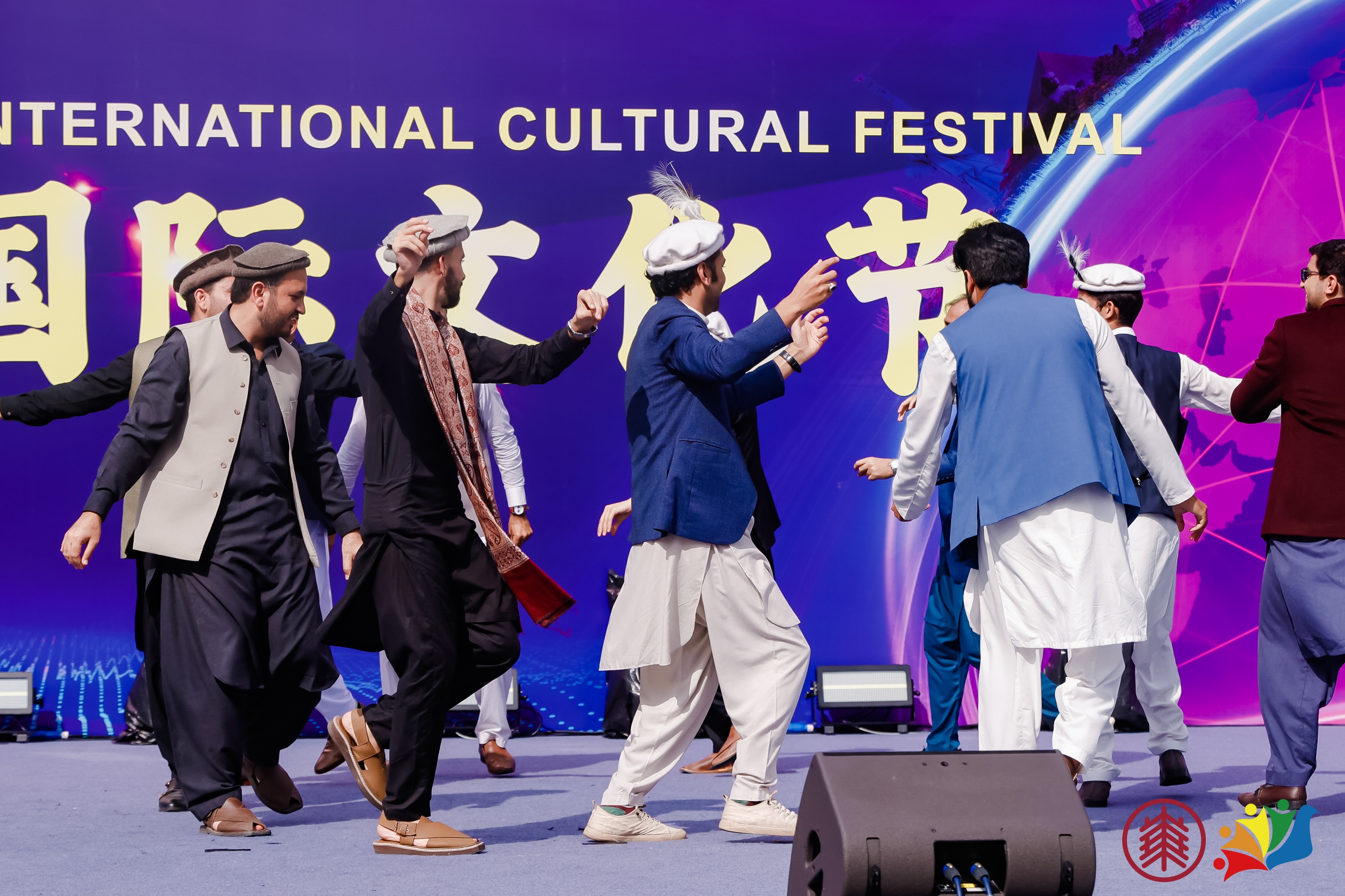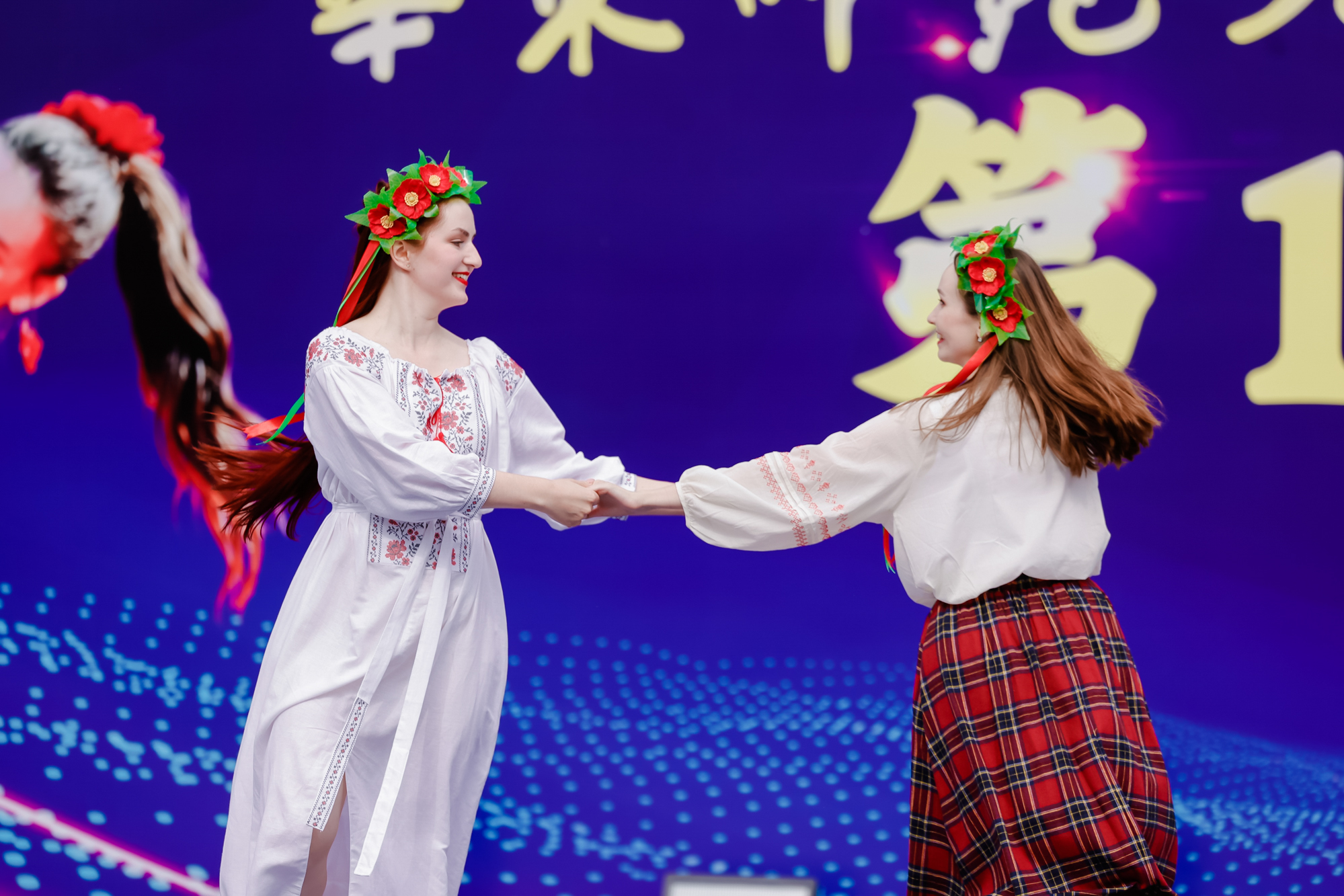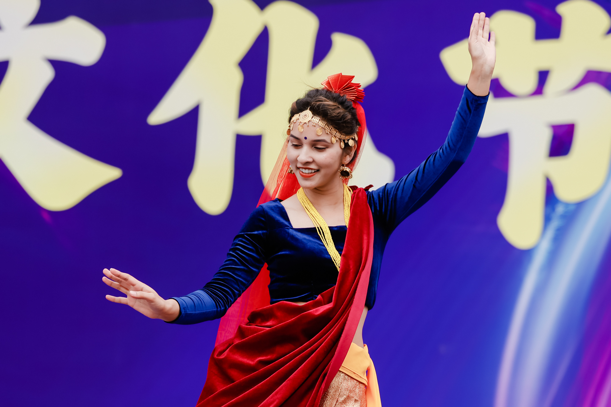 与各国展位交相辉映的还有舞台上极具异域风情的精彩表演。中国、巴基斯坦、白俄罗斯、秘鲁、哈萨克斯坦、吉尔吉斯斯坦、缅甸、尼泊尔、泰国等国的外国留学生们欢歌热舞,动情演绎各国传统民族文化特色的歌曲与舞蹈,带来了一场沉浸式视听感官盛宴,尽显青春活力与“爱在华东师大”的校园风采,令观众们沉醉其中,鼓掌喝彩。