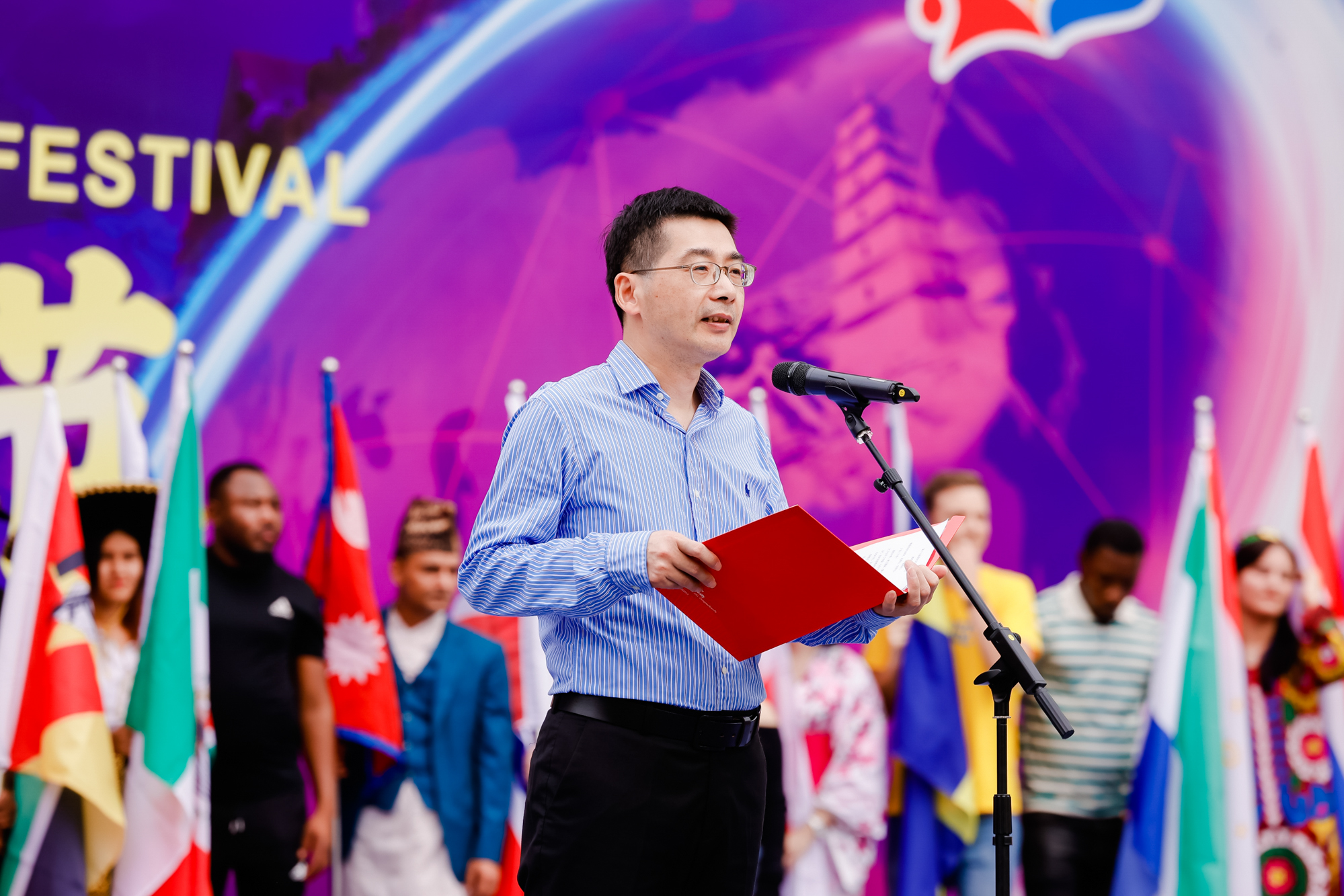 华东师大副校长顾红亮在开幕式上致辞,“此次国际文化节的主题是‘四海一家,五洲同乐’,这是一个理解文化、播撒友谊、分享欢乐的广阔舞台。感谢同学们充当中外文化交流的使者,让我们能够在丽娃河畔徜徉世界!”
