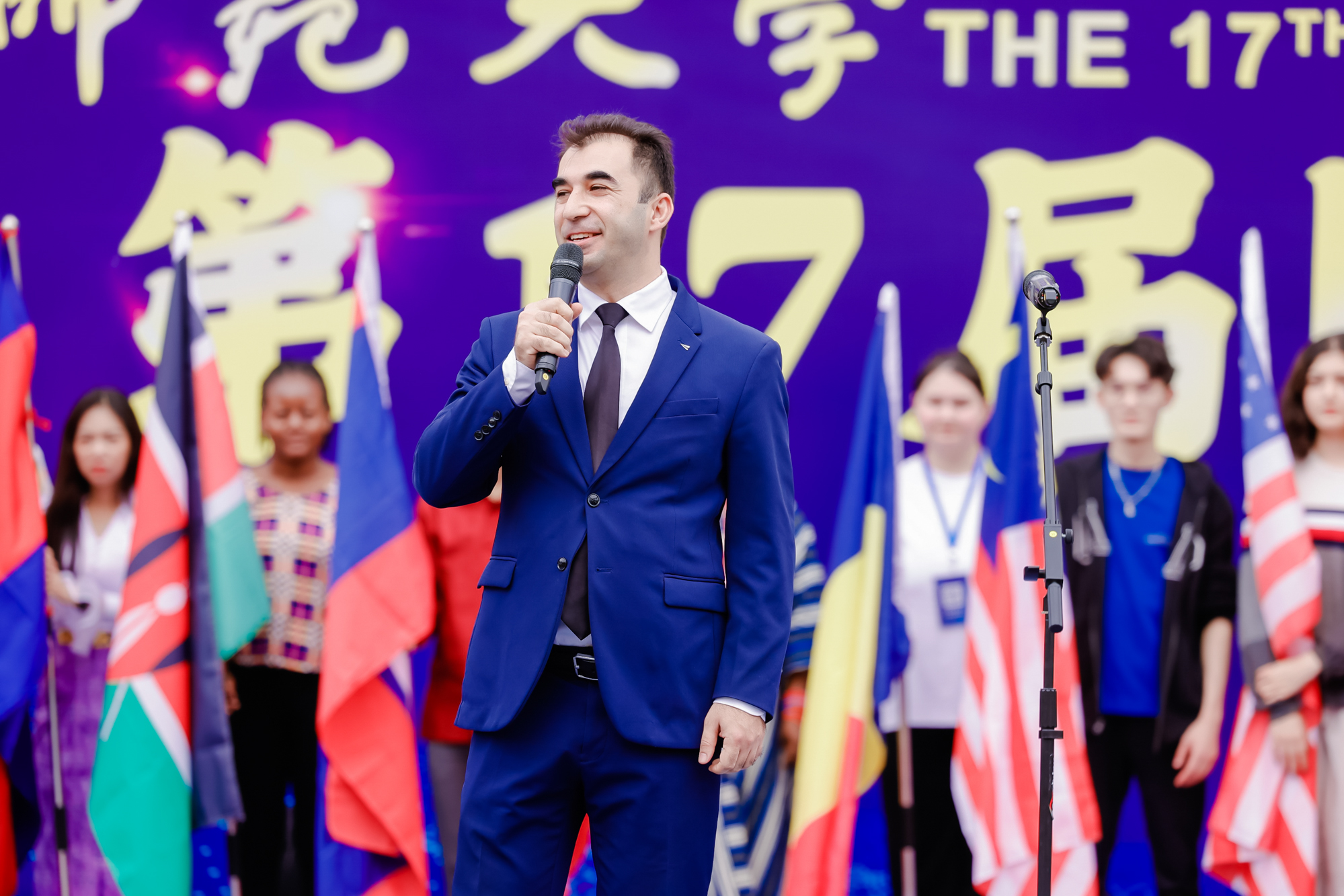 开幕式还邀请了杰出国际学生校友,阿塞拜疆汉学家、“一带一路”青年汉学家联盟主席阿利耶夫作为嘉宾发言。时隔多年后回到母校,他分享了在师大度过的难忘岁月,也鼓励国际学生们积极促进中外交流与合作,努力成为其本国与中国之间的语言之桥、文化之桥、友谊之桥。