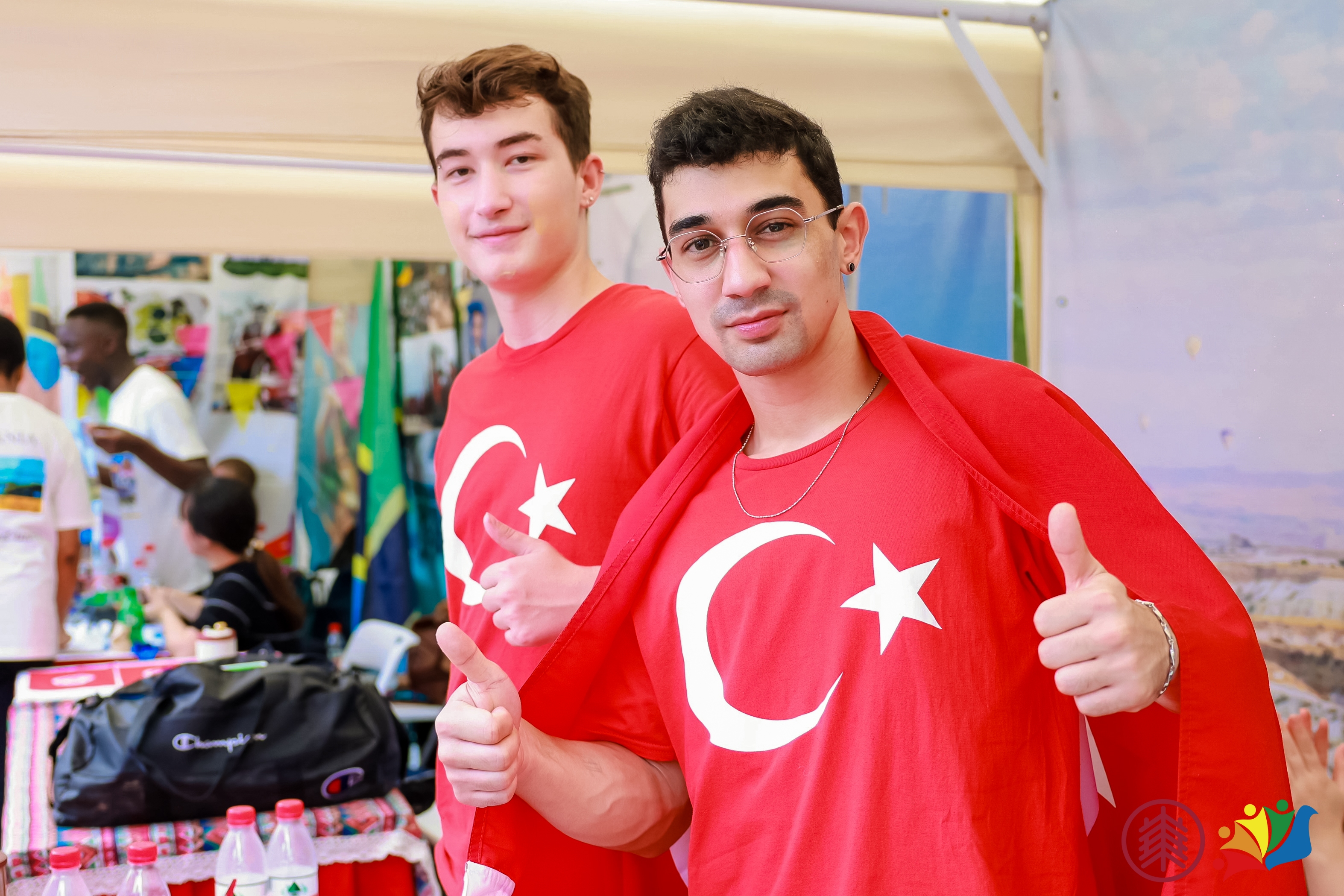 各国展位汇聚美食佳饮、精美工艺展品、绚丽多彩的民族服饰夺人眼球,观众们跟随音乐纵情摇摆,现场一片热烈生动、欢乐祥和的氛围。文化节吸引了学校师生与社区民众的广泛参与,纷纷手持定制版“纪念护照”收集纪念章打卡留念。值得一提的是,本次“迷你世博会”由来自五大洲70个国家和地区的中外学生合力呈现,参与学生、参与国别、演出节目数量以及系列活动主题形式均创造了历史之最!