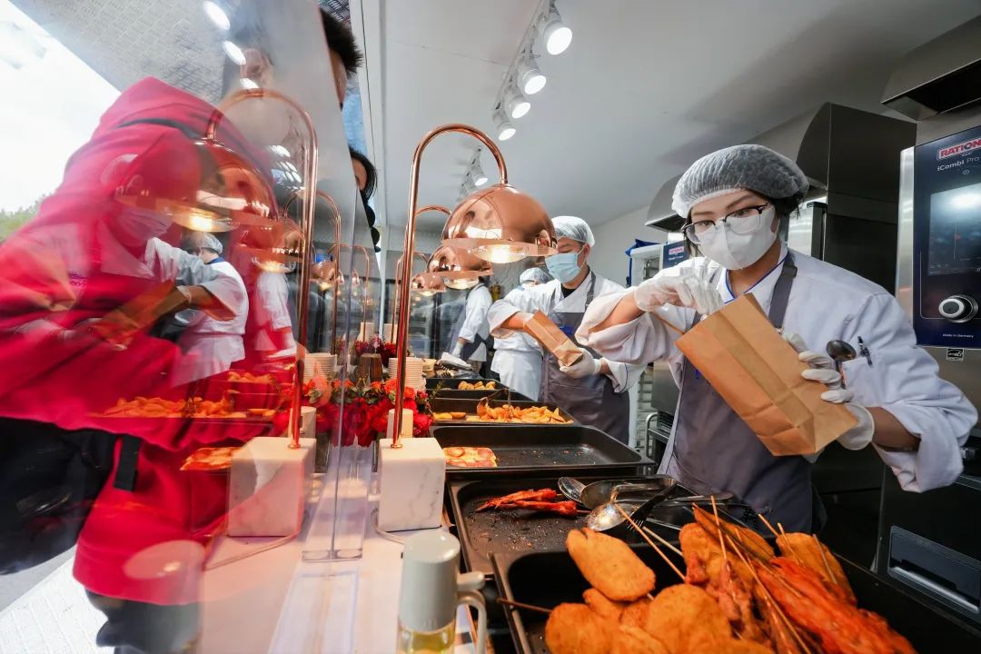 受邀观众在“味蕾补给站”标准化厨房示范体验区享用美食